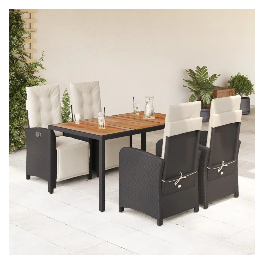 Savourez une tasse de café ou discutez avec votre famille et vos amis dans le jardin, l'arrière-cour ou sur le balcon avec cet ensemble de salle à manger de jardin confortable ! Matériau durable : la résine tressée, également connue sous le nom de poly rotin, est un matériau synthétique solide et nécessitant peu d'entretien qui ressemble au rotin naturel. Il est léger, facile à nettoyer et couramment utilisé pour les meubles d'extérieur en raison de sa durabilité et de ses propriétés de résistance aux intempéries.Dossier et repose-pied réglables : ce siège de jardin est doté d'une poignée. Vous pouvez régler le dossier et le repose-pied dans n'importe quelle position en tirant sur la poignée, et les remettre rapidement dans leur position initiale.Expérience d'assise confortable : ce mobilier d'extérieur, doté de coussins épais, offre une expérience d'assise confortable.Housse amovible et lavable : ces coussins de siège sont dotés de housses amovibles pour un lavage et un entretien faciles. Les coussins de dossier ont un rabat à l'arrière pour une fixation facile aux dossiers. Dessus stable et facile à nettoyer : cette table de jardin a un dessus en bois d'acacia robuste, durable et facile à nettoyer avec un chiffon humide. Bon à savoir :Pour que vos meubles d'extérieur restent beaux, nous vous recommandons de les protéger avec une housse imperméable.