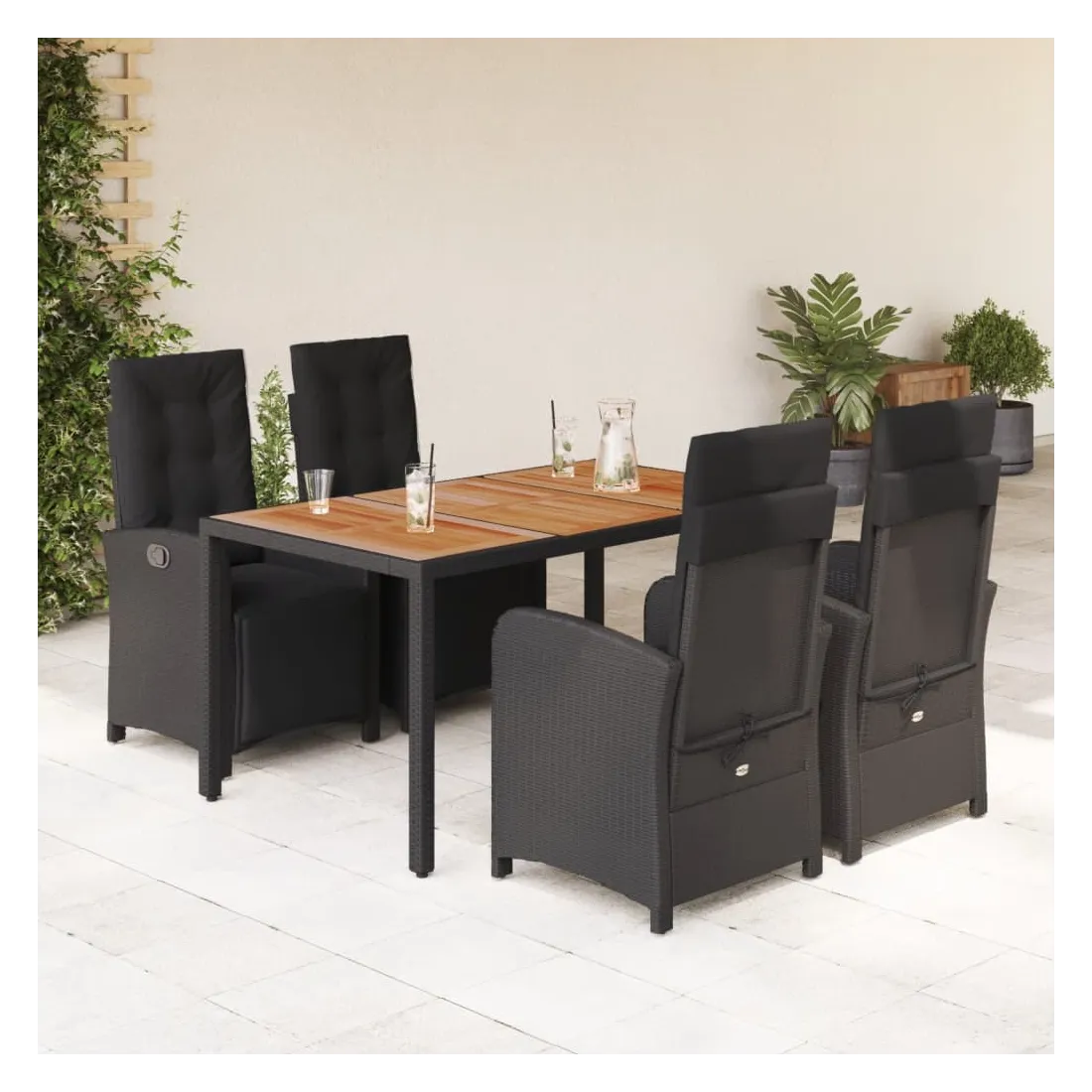 Savourez une tasse de café ou discutez avec votre famille et vos amis dans le jardin, l'arrière-cour ou sur le balcon avec cet ensemble de salle à manger de jardin confortable ! Matériau durable : la résine tressée, également connue sous le nom de poly rotin, est un matériau synthétique solide et nécessitant peu d'entretien qui ressemble au rotin naturel. Il est léger, facile à nettoyer et couramment utilisé pour les meubles d'extérieur en raison de sa durabilité et de ses propriétés de résistance aux intempéries.Dossier et repose-pied réglables : ce siège de jardin est doté d'une poignée. Vous pouvez régler le dossier et le repose-pied dans n'importe quelle position en tirant sur la poignée, et les remettre rapidement dans leur position initiale.Expérience d'assise confortable : ce mobilier d'extérieur, doté de coussins épais, offre une expérience d'assise confortable.Housse amovible et lavable : ces coussins de siège sont dotés de housses amovibles pour un lavage et un entretien faciles. Les coussins de dossier ont un rabat à l'arrière pour une fixation facile aux dossiers. Dessus stable et facile à nettoyer : cette table de jardin a un dessus en bois d'acacia robuste, durable et facile à nettoyer avec un chiffon humide. Bon à savoir :Pour que vos meubles d'extérieur restent beaux, nous vous recommandons de les protéger avec une housse imperméable.