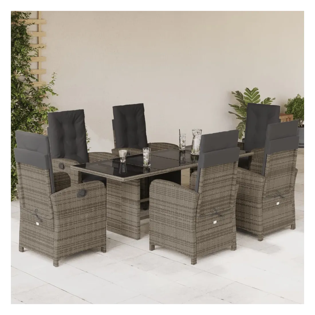 Savourez une tasse de café ou discutez avec votre famille et vos amis dans le jardin, l'arrière-cour ou sur le balcon avec cet ensemble de salle à manger de jardin confortable ! Matériau durable : la résine tressée, également connue sous le nom de poly rotin, est un matériau synthétique solide et nécessitant peu d'entretien qui ressemble au rotin naturel. Il est léger, facile à nettoyer et couramment utilisé pour les meubles d'extérieur en raison de sa durabilité et de ses propriétés de résistance aux intempéries.Dossier et repose-pied réglables : ce siège de jardin est doté d'une poignée. Vous pouvez régler le dossier et le repose-pied dans n'importe quelle position en tirant sur la poignée, et les remettre rapidement dans leur position initiale.Expérience d'assise confortable : ce mobilier d'extérieur, doté de coussins épais, offre une expérience d'assise confortable.Housse amovible et lavable : ces coussins de siège sont dotés de housses amovibles pour un lavage et un entretien faciles. Les coussins de dossier ont un rabat à l'arrière pour une fixation facile aux dossiers.Dessus en verre : le dessus de la table d'extérieur est fabriqué en verre trempé solide et durable, ce qui le rend facile à nettoyer avec un chiffon humide et ajoute une touche d'élégance à votre espace extérieur. Bon à savoir :Pour que vos meubles d'extérieur restent beaux, nous vous recommandons de les protéger avec une housse imperméable.