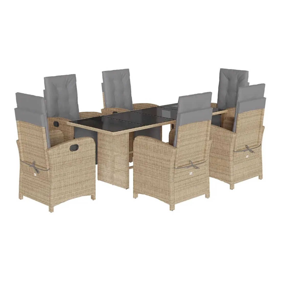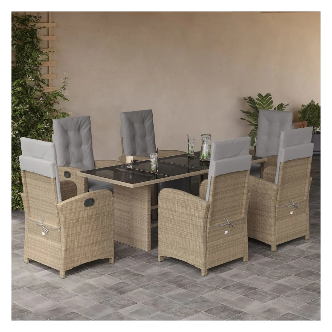Savourez une tasse de café ou discutez avec votre famille et vos amis dans le jardin, l'arrière-cour ou sur le balcon avec cet ensemble de salle à manger de jardin confortable ! Matériau durable : la résine tressée, également connue sous le nom de poly rotin, est un matériau synthétique solide et nécessitant peu d'entretien qui ressemble au rotin naturel. Il est léger, facile à nettoyer et couramment utilisé pour les meubles d'extérieur en raison de sa durabilité et de ses propriétés de résistance aux intempéries.Dossier et repose-pied réglables : ce siège de jardin est doté d'une poignée. Vous pouvez régler le dossier et le repose-pied dans n'importe quelle position en tirant sur la poignée, et les remettre rapidement dans leur position initiale.Expérience d'assise confortable : ce mobilier d'extérieur, doté de coussins épais, offre une expérience d'assise confortable.Housse amovible et lavable : ces coussins de siège sont dotés de housses amovibles pour un lavage et un entretien faciles. Les coussins de dossier ont un rabat à l'arrière pour une fixation facile aux dossiers.Dessus en verre : le dessus de la table d'extérieur est fabriqué en verre trempé solide et durable, ce qui le rend facile à nettoyer avec un chiffon humide et ajoute une touche d'élégance à votre espace extérieur. Bon à savoir :Pour que vos meubles d'extérieur restent beaux, nous vous recommandons de les protéger avec une housse imperméable.