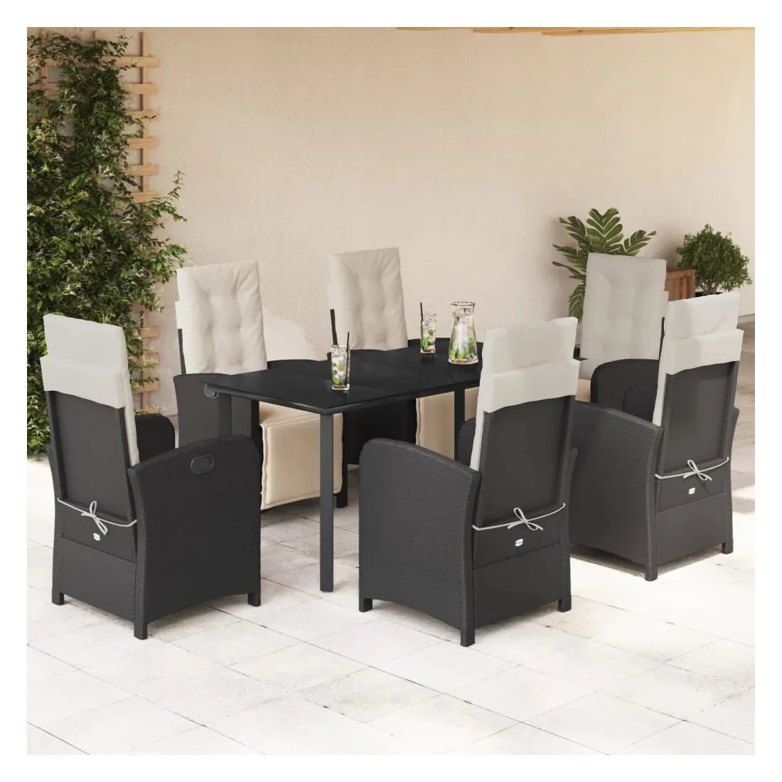 Savourez une tasse de café ou discutez avec votre famille et vos amis dans le jardin, l'arrière-cour ou sur le balcon avec cet ensemble de salle à manger de jardin confortable ! Matériau durable : la résine tressée, également connue sous le nom de poly rotin, est un matériau synthétique solide et nécessitant peu d'entretien qui ressemble au rotin naturel. Il est léger, facile à nettoyer et couramment utilisé pour les meubles d'extérieur en raison de sa durabilité et de ses propriétés de résistance aux intempéries.Dossier et repose-pied réglables : ce siège de jardin est doté d'une poignée. Vous pouvez régler le dossier et le repose-pied dans n'importe quelle position en tirant sur la poignée, et les remettre rapidement dans leur position initiale.Expérience d'assise confortable : ce mobilier d'extérieur, doté de coussins épais, offre une expérience d'assise confortable.Housse amovible et lavable : ces coussins de siège sont dotés de housses amovibles pour un lavage et un entretien faciles. Les coussins de dossier ont un rabat à l'arrière pour une fixation facile aux dossiers.Dessus en verre : le dessus de la table d'extérieur est fabriqué en verre trempé solide et durable, ce qui le rend facile à nettoyer avec un chiffon humide et ajoute une touche d'élégance à votre espace extérieur. Bon à savoir :Pour que vos meubles d'extérieur restent beaux, nous vous recommandons de les protéger avec une housse imperméable.