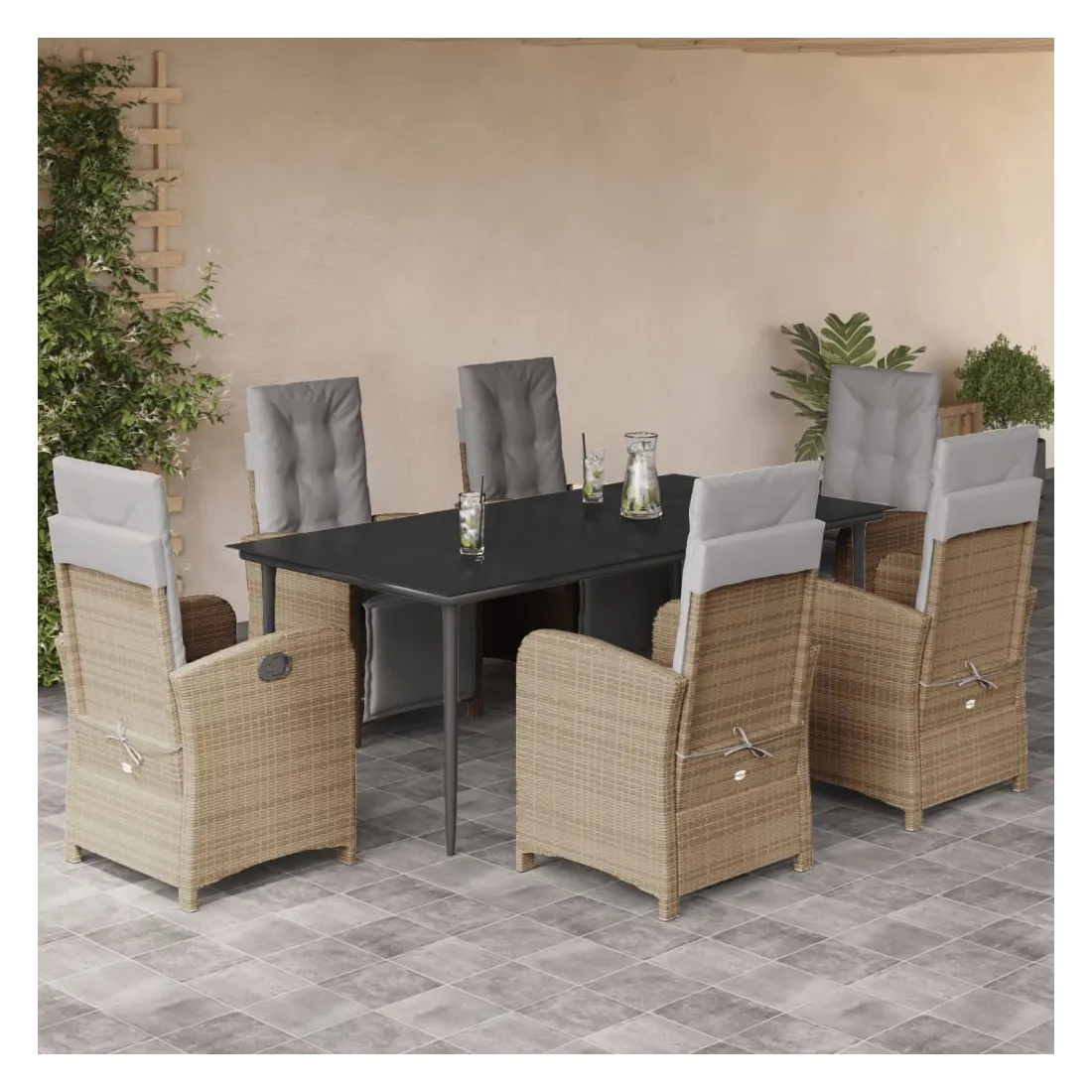 Savourez une tasse de café ou discutez avec votre famille et vos amis dans le jardin, l'arrière-cour ou sur le balcon avec cet ensemble de salle à manger de jardin confortable ! Matériau durable : la résine tressée, également connue sous le nom de poly rotin, est un matériau synthétique solide et nécessitant peu d'entretien qui ressemble au rotin naturel. Il est léger, facile à nettoyer et couramment utilisé pour les meubles d'extérieur en raison de sa durabilité et de ses propriétés de résistance aux intempéries.Dossier et repose-pied réglables : ce siège de jardin est doté d'une poignée. Vous pouvez régler le dossier et le repose-pied dans n'importe quelle position en tirant sur la poignée, et les remettre rapidement dans leur position initiale.Expérience d'assise confortable : ce mobilier d'extérieur, doté de coussins épais, offre une expérience d'assise confortable.Housse amovible et lavable : ces coussins de siège sont dotés de housses amovibles pour un lavage et un entretien faciles. Les coussins de dossier ont un rabat à l'arrière pour une fixation facile aux dossiers.Dessus en verre : le dessus de la table d'extérieur est fabriqué en verre trempé solide et durable, ce qui le rend facile à nettoyer avec un chiffon humide et ajoute une touche d'élégance à votre espace extérieur. Bon à savoir :Pour que vos meubles d'extérieur restent beaux, nous vous recommandons de les protéger avec une housse imperméable.