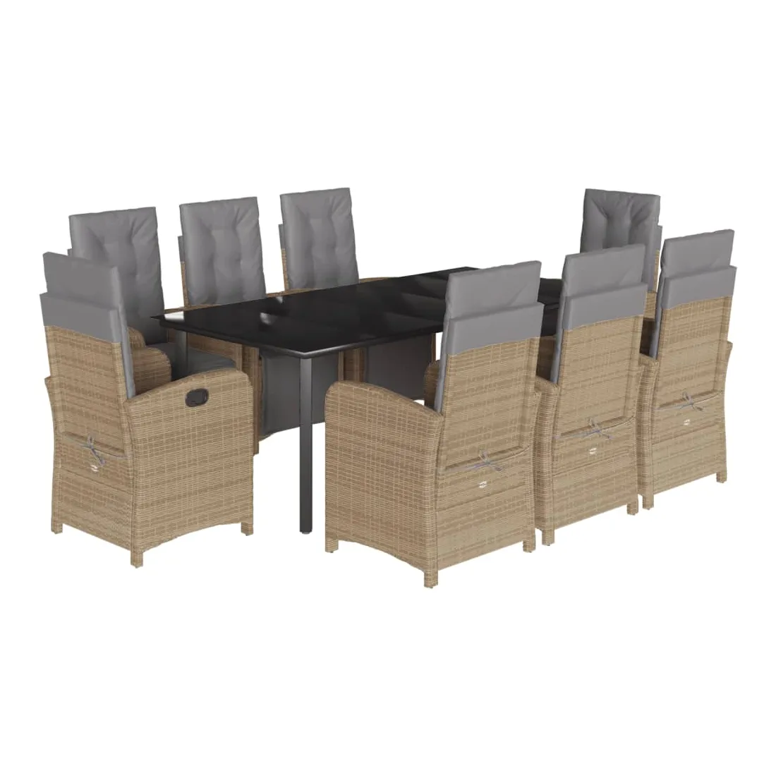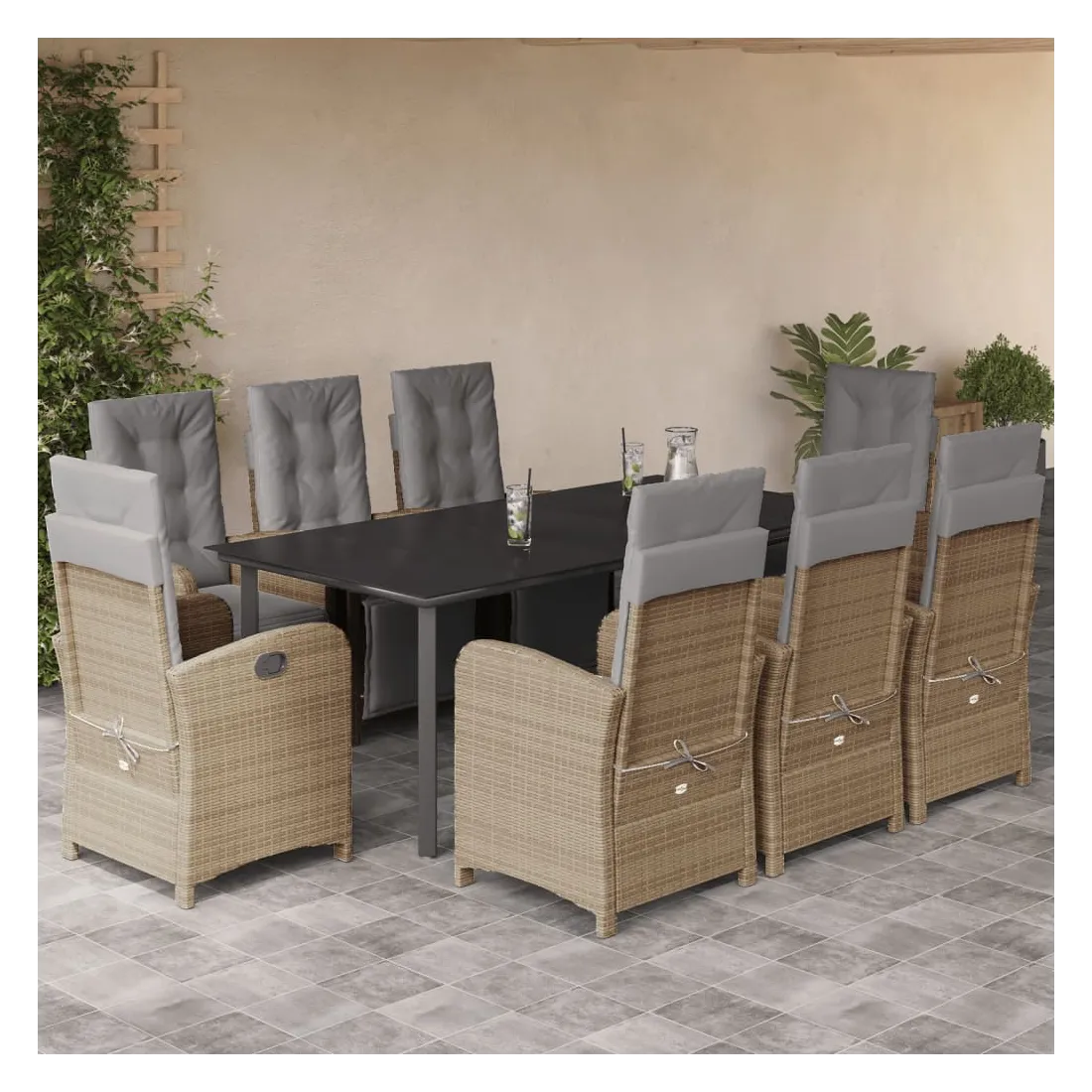 Savourez une tasse de café ou discutez avec votre famille et vos amis dans le jardin, l'arrière-cour ou sur le balcon avec cet ensemble de salle à manger de jardin confortable ! Matériau durable : la résine tressée, également connue sous le nom de poly rotin, est un matériau synthétique solide et nécessitant peu d'entretien qui ressemble au rotin naturel. Il est léger, facile à nettoyer et couramment utilisé pour les meubles d'extérieur en raison de sa durabilité et de ses propriétés de résistance aux intempéries.Dossier et repose-pied réglables : ce siège de jardin est doté d'une poignée. Vous pouvez régler le dossier et le repose-pied dans n'importe quelle position en tirant sur la poignée, et les remettre rapidement dans leur position initiale.Expérience d'assise confortable : ce mobilier d'extérieur, doté de coussins épais, offre une expérience d'assise confortable.Housse amovible et lavable : ces coussins de siège sont dotés de housses amovibles pour un lavage et un entretien faciles. Les coussins de dossier ont un rabat à l'arrière pour une fixation facile aux dossiers.Dessus en verre : le dessus de la table d'extérieur est fabriqué en verre trempé solide et durable, ce qui le rend facile à nettoyer avec un chiffon humide et ajoute une touche d'élégance à votre espace extérieur. Bon à savoir :Pour que vos meubles d'extérieur restent beaux, nous vous recommandons de les protéger avec une housse imperméable.