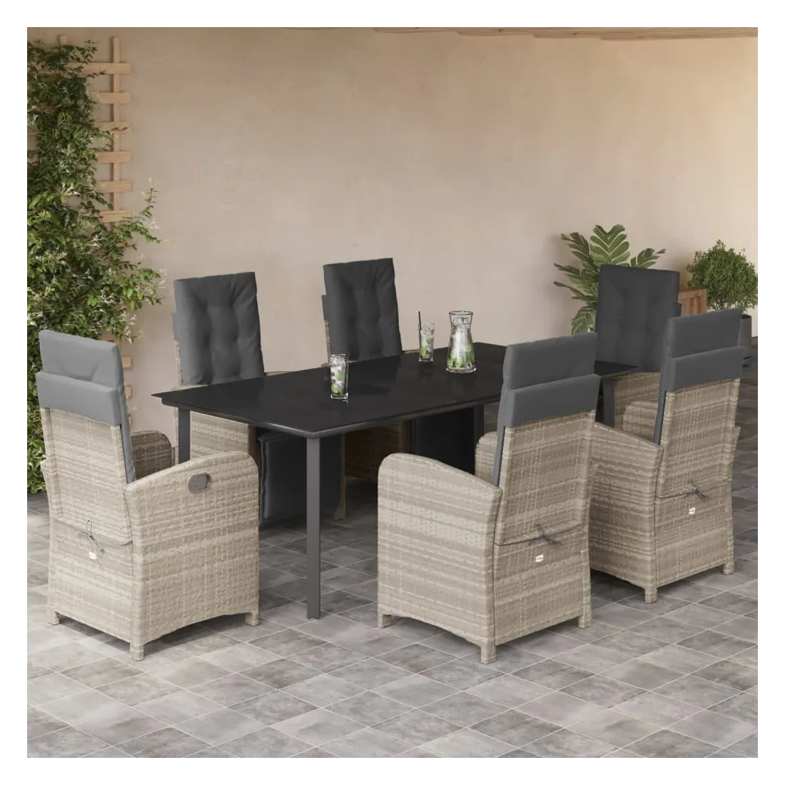 Savourez une tasse de café ou discutez avec votre famille et vos amis dans le jardin, l'arrière-cour ou sur le balcon avec cet ensemble de salle à manger de jardin confortable ! Matériau durable : la résine tressée, également connue sous le nom de poly rotin, est un matériau synthétique solide et nécessitant peu d'entretien qui ressemble au rotin naturel. Il est léger, facile à nettoyer et couramment utilisé pour les meubles d'extérieur en raison de sa durabilité et de ses propriétés de résistance aux intempéries.Dossier et repose-pied réglables : ce siège de jardin est doté d'une poignée. Vous pouvez régler le dossier et le repose-pied dans n'importe quelle position en tirant sur la poignée, et les remettre rapidement dans leur position initiale.Expérience d'assise confortable : ce mobilier d'extérieur, doté de coussins épais, offre une expérience d'assise confortable.Housse amovible et lavable : ces coussins de siège sont dotés de housses amovibles pour un lavage et un entretien faciles. Les coussins de dossier ont un rabat à l'arrière pour une fixation facile aux dossiers.Dessus en verre : le dessus de la table d'extérieur est fabriqué en verre trempé solide et durable, ce qui le rend facile à nettoyer avec un chiffon humide et ajoute une touche d'élégance à votre espace extérieur. Bon à savoir :Pour que vos meubles d'extérieur restent beaux, nous vous recommandons de les protéger avec une housse imperméable.