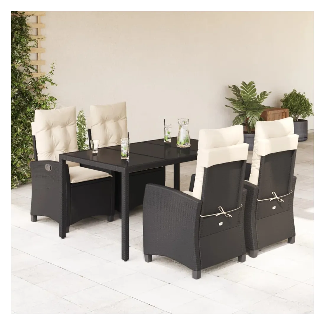 Cet ensemble de salle à manger de jardin est un excellent choix pour les repas en plein air ou pour vous détendre dans le jardin, l'arrière-cour ou le patio. Matériau durable : la résine tressée, également connue sous le nom de poly rotin, est un matériau synthétique solide et nécessitant peu d'entretien qui ressemble au rotin naturel. Il est léger, facile à nettoyer et couramment utilisé pour les meubles d'extérieur en raison de sa durabilité et de ses propriétés de résistance aux intempéries. Dossier réglable : ce siège de jardin est doté d'une poignée. Vous pouvez régler le dossier dans n'importe quelle position en tirant sur la poignée et le remettre rapidement dans sa position initiale.Dessus en verre : le dessus de la table d'extérieur est fabriqué en verre trempé solide et durable, ce qui le rend facile à nettoyer avec un chiffon humide et ajoute une touche d'élégance à votre espace extérieur. Expérience d'assise confortable : ce mobilier d'extérieur, doté de coussins épais, offre une expérience d'assise confortable. Housse amovible et lavable : ces coussins de siège sont dotés de housses amovibles pour un lavage et un entretien faciles. Bon à savoir :Pour que vos meubles d'extérieur restent beaux, nous vous recommandons de les protéger avec une housse imperméable.