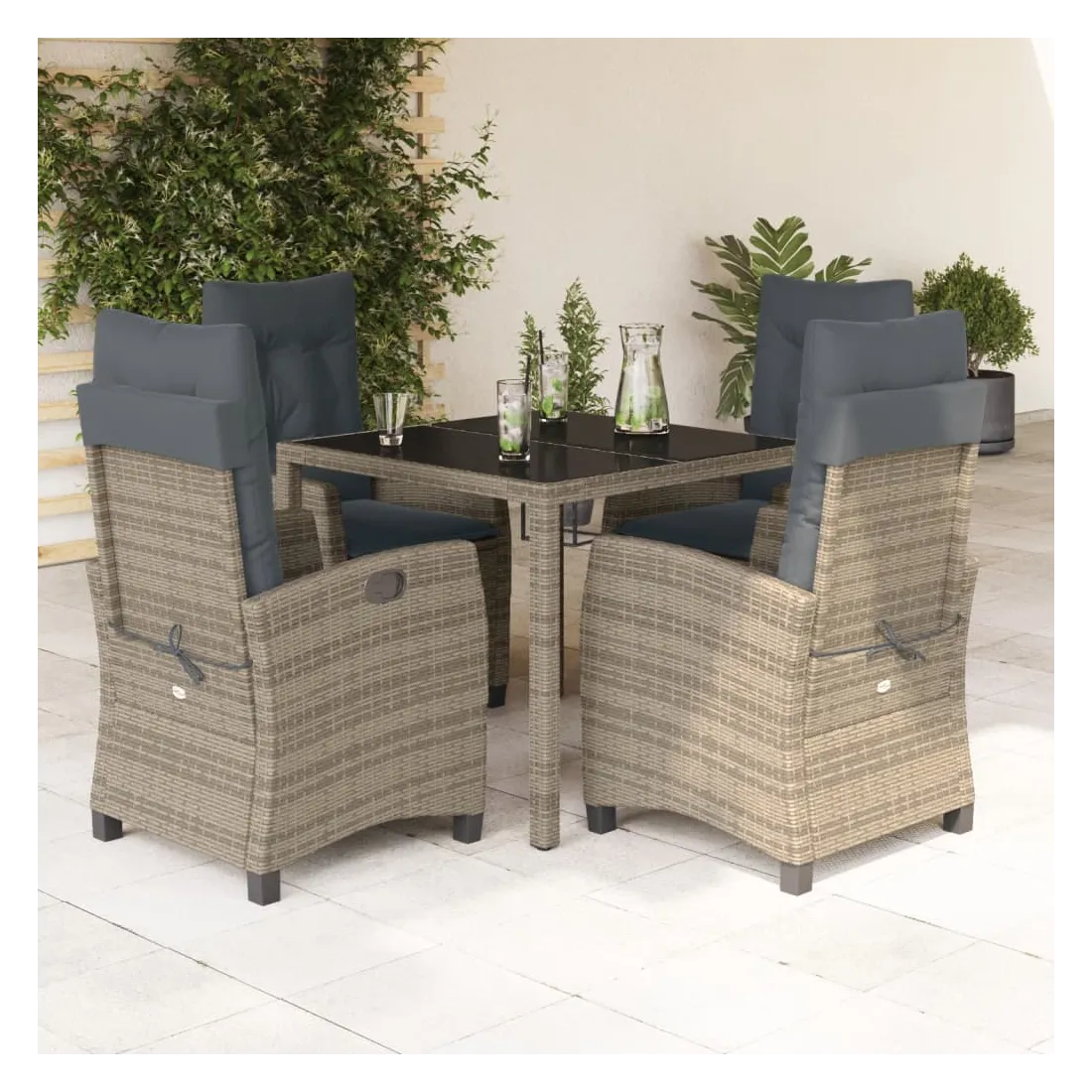vidaXLCet ensemble de salle à manger de jardin est un excellent choix pour les repas en plein air ou pour vous détendre dans le jardin, l'arrière-cour ou le patio. Matériau durable : la résine tressée, également connue sous le nom de poly rotin, est un matériau synthétique solide et nécessitant peu d'entretien qui ressemble au rotin naturel. Il est léger, facile à nettoyer et couramment utilisé pour les meubles d'extérieur en raison de sa durabilité et de ses propriétés de résistance aux intempéries. Dossier réglable : ce siège de jardin est doté d'une poignée. Vous pouvez régler le dossier dans n'importe quelle position en tirant sur la poignée et le remettre rapidement dans sa position initiale.Dessus en verre : le dessus de la table d'extérieur est fabriqué en verre trempé solide et durable, ce qui le rend facile à nettoyer avec un chiffon humide et ajoute une touche d'élégance à votre espace extérieur. Expérience d'assise confortable : ce mobilier d'extérieur, doté de coussins épais, offre une expérience d'assise confortable. Housse amovible et lavable : ces coussins de siège sont dotés de housses amovibles pour un lavage et un entretien faciles. Bon à savoir :Pour que vos meubles d'extérieur restent beaux, nous vous recommandons de les protéger avec une housse imperméable.