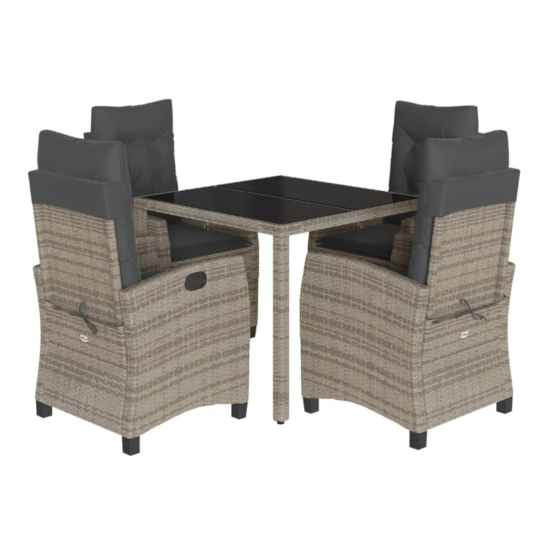 Ensemble à manger de jardin 5 pcs coussins gris résine tressée