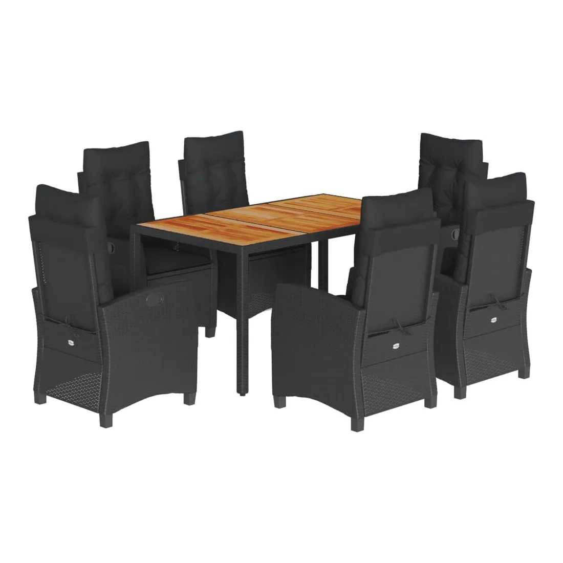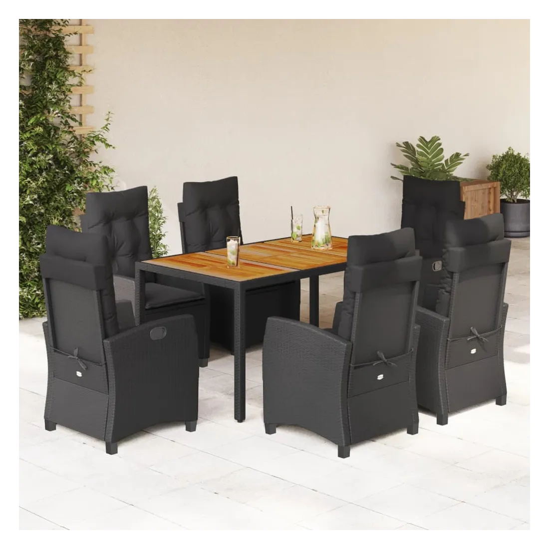 Cet ensemble de salle à manger de jardin est un excellent choix pour les repas en plein air ou pour vous détendre dans le jardin, l'arrière-cour ou le patio. Matériau durable : la résine tressée, également connue sous le nom de poly rotin, est un matériau synthétique solide et nécessitant peu d'entretien qui ressemble au rotin naturel. Il est léger, facile à nettoyer et couramment utilisé pour les meubles d'extérieur en raison de sa durabilité et de ses propriétés de résistance aux intempéries. Dossier réglable : ce siège de jardin est doté d'une poignée. Vous pouvez régler le dossier dans n'importe quelle position en tirant sur la poignée et le remettre rapidement dans sa position initiale.Dessus stable et facile à nettoyer : cette table de jardin a un dessus en bois d'acacia robuste, durable et facile à nettoyer avec un chiffon humide. Expérience d'assise confortable : ce mobilier d'extérieur, doté de coussins épais, offre une expérience d'assise confortable. Housse amovible et lavable : ces coussins de siège sont dotés de housses amovibles pour un lavage et un entretien faciles. Bon à savoir :Pour que vos meubles d'extérieur restent beaux, nous vous recommandons de les protéger avec une housse imperméable.
