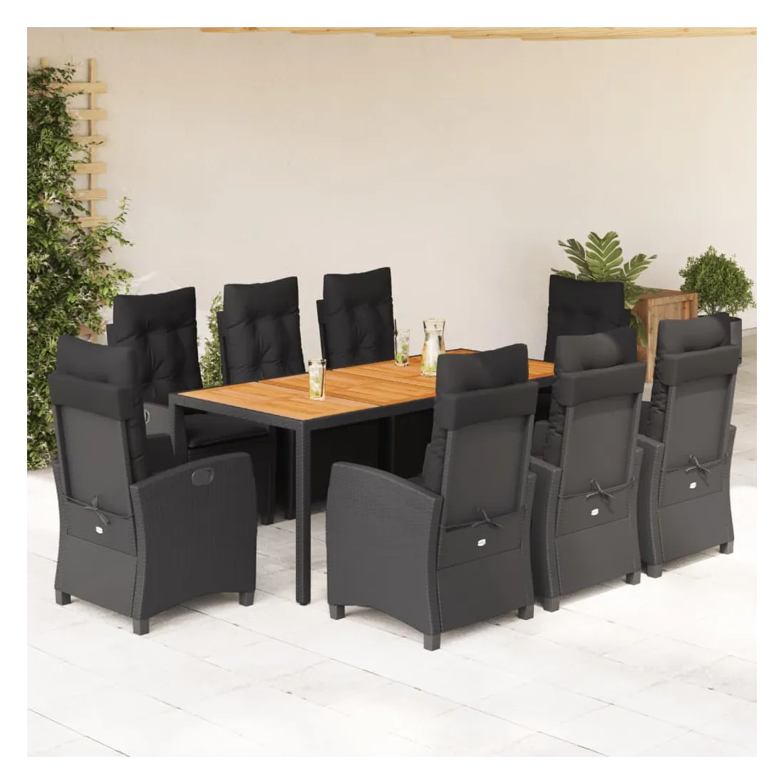 Cet ensemble de salle à manger de jardin est un excellent choix pour les repas en plein air ou pour vous détendre dans le jardin, l'arrière-cour ou le patio. Matériau durable : la résine tressée, également connue sous le nom de poly rotin, est un matériau synthétique solide et nécessitant peu d'entretien qui ressemble au rotin naturel. Il est léger, facile à nettoyer et couramment utilisé pour les meubles d'extérieur en raison de sa durabilité et de ses propriétés de résistance aux intempéries. Dossier réglable : ce siège de jardin est doté d'une poignée. Vous pouvez régler le dossier dans n'importe quelle position en tirant sur la poignée et le remettre rapidement dans sa position initiale.Dessus stable et facile à nettoyer : cette table de jardin a un dessus en bois d'acacia robuste, durable et facile à nettoyer avec un chiffon humide. Expérience d'assise confortable : ce mobilier d'extérieur, doté de coussins épais, offre une expérience d'assise confortable. Housse amovible et lavable : ces coussins de siège sont dotés de housses amovibles pour un lavage et un entretien faciles. Bon à savoir :Pour que vos meubles d'extérieur restent beaux, nous vous recommandons de les protéger avec une housse imperméable.
