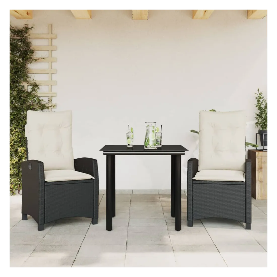 Cet ensemble de salle à manger de jardin est un excellent choix pour les repas en plein air ou pour vous détendre dans le jardin, l'arrière-cour ou le patio. Matériau durable : la résine tressée, également connue sous le nom de poly rotin, est un matériau synthétique solide et nécessitant peu d'entretien qui ressemble au rotin naturel. Il est léger, facile à nettoyer et couramment utilisé pour les meubles d'extérieur en raison de sa durabilité et de ses propriétés de résistance aux intempéries. Dossier réglable : ce siège de jardin est doté d'une poignée. Vous pouvez régler le dossier dans n'importe quelle position en tirant sur la poignée et le remettre rapidement dans sa position initiale.Dessus en verre : le dessus de la table d'extérieur est fabriqué en verre trempé solide et durable, ce qui le rend facile à nettoyer avec un chiffon humide et ajoute une touche d'élégance à votre espace extérieur. Expérience d'assise confortable : ce mobilier d'extérieur, doté de coussins épais, offre une expérience d'assise confortable. Housse amovible et lavable : ces coussins de siège sont dotés de housses amovibles pour un lavage et un entretien faciles. Bon à savoir :Pour que vos meubles d'extérieur restent beaux, nous vous recommandons de les protéger avec une housse imperméable.