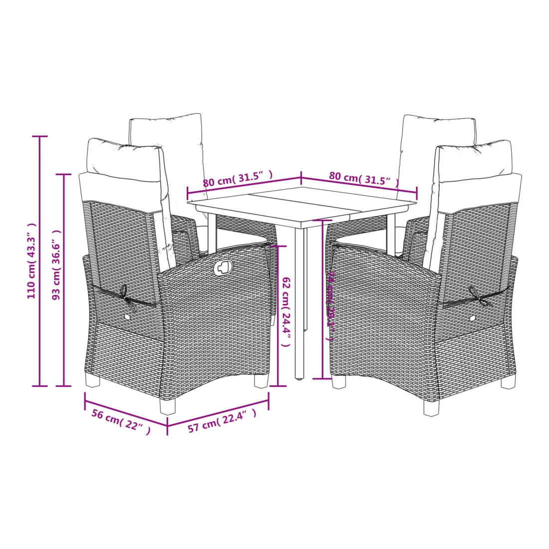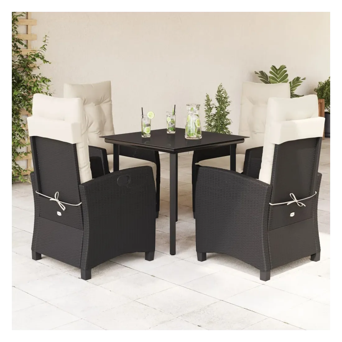 Cet ensemble de salle à manger de jardin est un excellent choix pour les repas en plein air ou pour vous détendre dans le jardin, l'arrière-cour ou le patio. Matériau durable : la résine tressée, également connue sous le nom de poly rotin, est un matériau synthétique solide et nécessitant peu d'entretien qui ressemble au rotin naturel. Il est léger, facile à nettoyer et couramment utilisé pour les meubles d'extérieur en raison de sa durabilité et de ses propriétés de résistance aux intempéries. Dossier réglable : ce siège de jardin est doté d'une poignée. Vous pouvez régler le dossier dans n'importe quelle position en tirant sur la poignée et le remettre rapidement dans sa position initiale.Dessus en verre : le dessus de la table d'extérieur est fabriqué en verre trempé solide et durable, ce qui le rend facile à nettoyer avec un chiffon humide et ajoute une touche d'élégance à votre espace extérieur. Expérience d'assise confortable : ce mobilier d'extérieur, doté de coussins épais, offre une expérience d'assise confortable. Housse amovible et lavable : ces coussins de siège sont dotés de housses amovibles pour un lavage et un entretien faciles. Bon à savoir :Pour que vos meubles d'extérieur restent beaux, nous vous recommandons de les protéger avec une housse imperméable.
