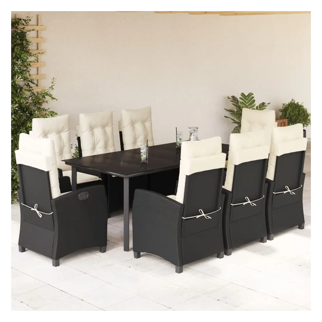 Cet ensemble de salle à manger de jardin est un excellent choix pour les repas en plein air ou pour vous détendre dans le jardin, l'arrière-cour ou le patio. Matériau durable : la résine tressée, également connue sous le nom de poly rotin, est un matériau synthétique solide et nécessitant peu d'entretien qui ressemble au rotin naturel. Il est léger, facile à nettoyer et couramment utilisé pour les meubles d'extérieur en raison de sa durabilité et de ses propriétés de résistance aux intempéries. Dossier réglable : ce siège de jardin est doté d'une poignée. Vous pouvez régler le dossier dans n'importe quelle position en tirant sur la poignée et le remettre rapidement dans sa position initiale.Dessus en verre : le dessus de la table d'extérieur est fabriqué en verre trempé solide et durable, ce qui le rend facile à nettoyer avec un chiffon humide et ajoute une touche d'élégance à votre espace extérieur. Expérience d'assise confortable : ce mobilier d'extérieur, doté de coussins épais, offre une expérience d'assise confortable. Housse amovible et lavable : ces coussins de siège sont dotés de housses amovibles pour un lavage et un entretien faciles. Bon à savoir :Pour que vos meubles d'extérieur restent beaux, nous vous recommandons de les protéger avec une housse imperméable.