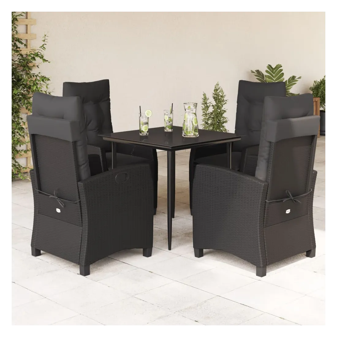 Cet ensemble de salle à manger de jardin est un excellent choix pour les repas en plein air ou pour vous détendre dans le jardin, l'arrière-cour ou le patio. Matériau durable : la résine tressée, également connue sous le nom de poly rotin, est un matériau synthétique solide et nécessitant peu d'entretien qui ressemble au rotin naturel. Il est léger, facile à nettoyer et couramment utilisé pour les meubles d'extérieur en raison de sa durabilité et de ses propriétés de résistance aux intempéries. Dossier réglable : ce siège de jardin est doté d'une poignée. Vous pouvez régler le dossier dans n'importe quelle position en tirant sur la poignée et le remettre rapidement dans sa position initiale.Dessus en verre : le dessus de la table d'extérieur est fabriqué en verre trempé solide et durable, ce qui le rend facile à nettoyer avec un chiffon humide et ajoute une touche d'élégance à votre espace extérieur. Expérience d'assise confortable : ce mobilier d'extérieur, doté de coussins épais, offre une expérience d'assise confortable. Housse amovible et lavable : ces coussins de siège sont dotés de housses amovibles pour un lavage et un entretien faciles. Bon à savoir :Pour que vos meubles d'extérieur restent beaux, nous vous recommandons de les protéger avec une housse imperméable.
