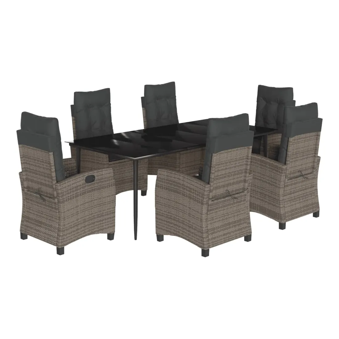 Cet ensemble de salle à manger de jardin est un excellent choix pour les repas en plein air ou pour vous détendre dans le jardin, l'arrière-cour ou le patio. Matériau durable : la résine tressée, également connue sous le nom de poly rotin, est un matériau synthétique solide et nécessitant peu d'entretien qui ressemble au rotin naturel. Il est léger, facile à nettoyer et couramment utilisé pour les meubles d'extérieur en raison de sa durabilité et de ses propriétés de résistance aux intempéries. Dossier réglable : ce siège de jardin est doté d'une poignée. Vous pouvez régler le dossier dans n'importe quelle position en tirant sur la poignée et le remettre rapidement dans sa position initiale.Dessus en verre : le dessus de la table d'extérieur est fabriqué en verre trempé solide et durable, ce qui le rend facile à nettoyer avec un chiffon humide et ajoute une touche d'élégance à votre espace extérieur. Expérience d'assise confortable : ce mobilier d'extérieur, doté de coussins épais, offre une expérience d'assise confortable. Housse amovible et lavable : ces coussins de siège sont dotés de housses amovibles pour un lavage et un entretien faciles. Bon à savoir :Pour que vos meubles d'extérieur restent beaux, nous vous recommandons de les protéger avec une housse imperméable.