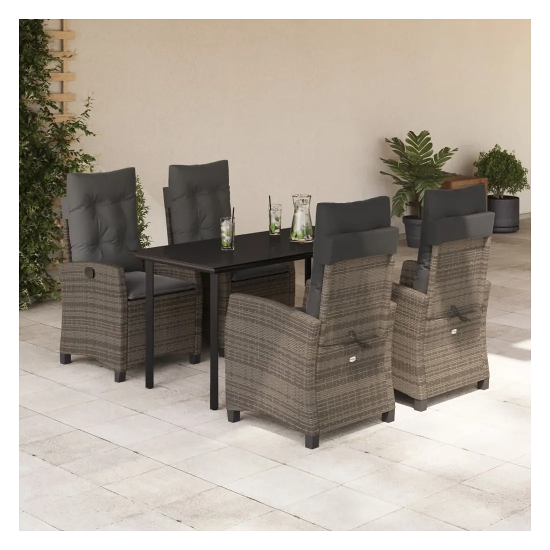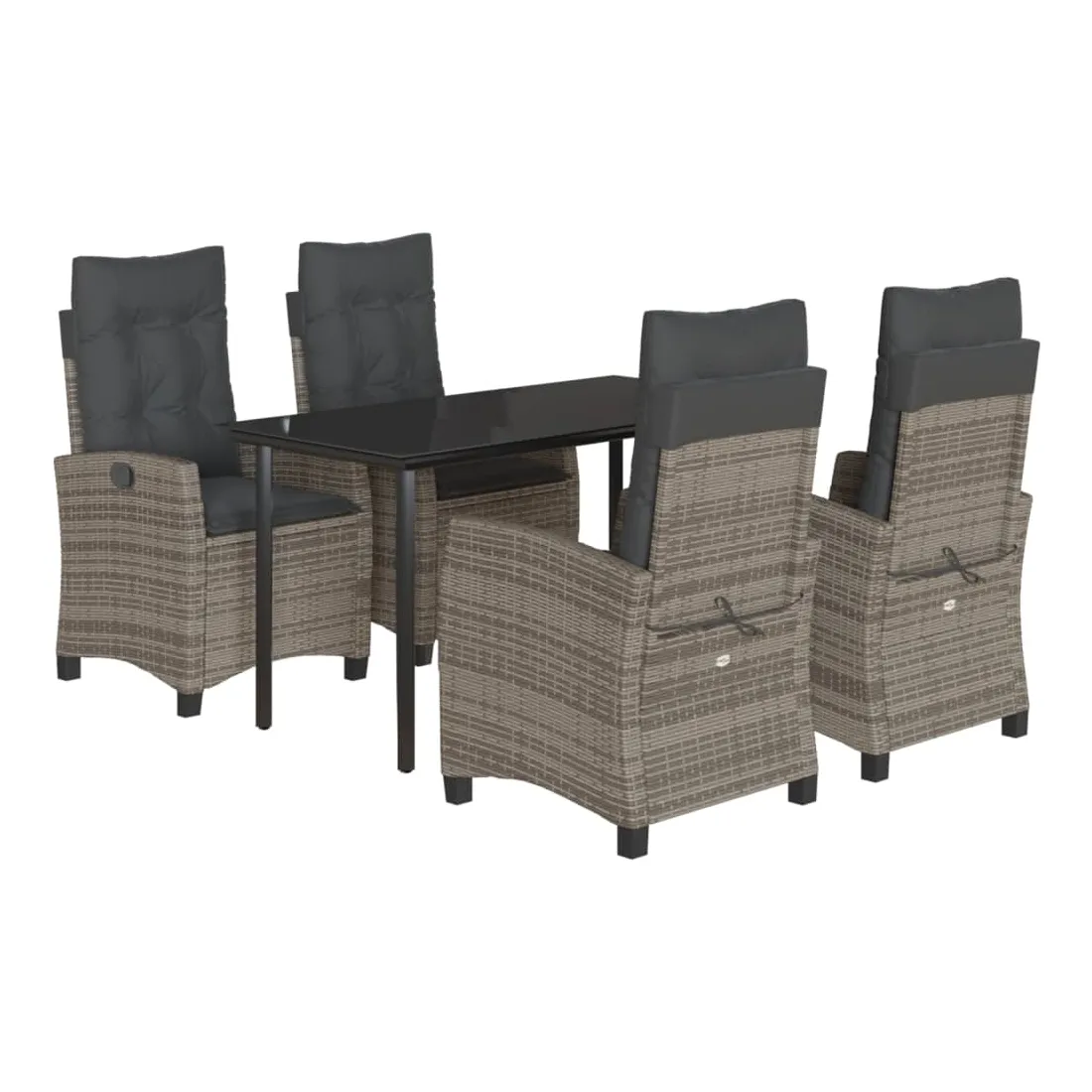 Ensemble à manger de jardin 5 pcs coussins gris résine tressée