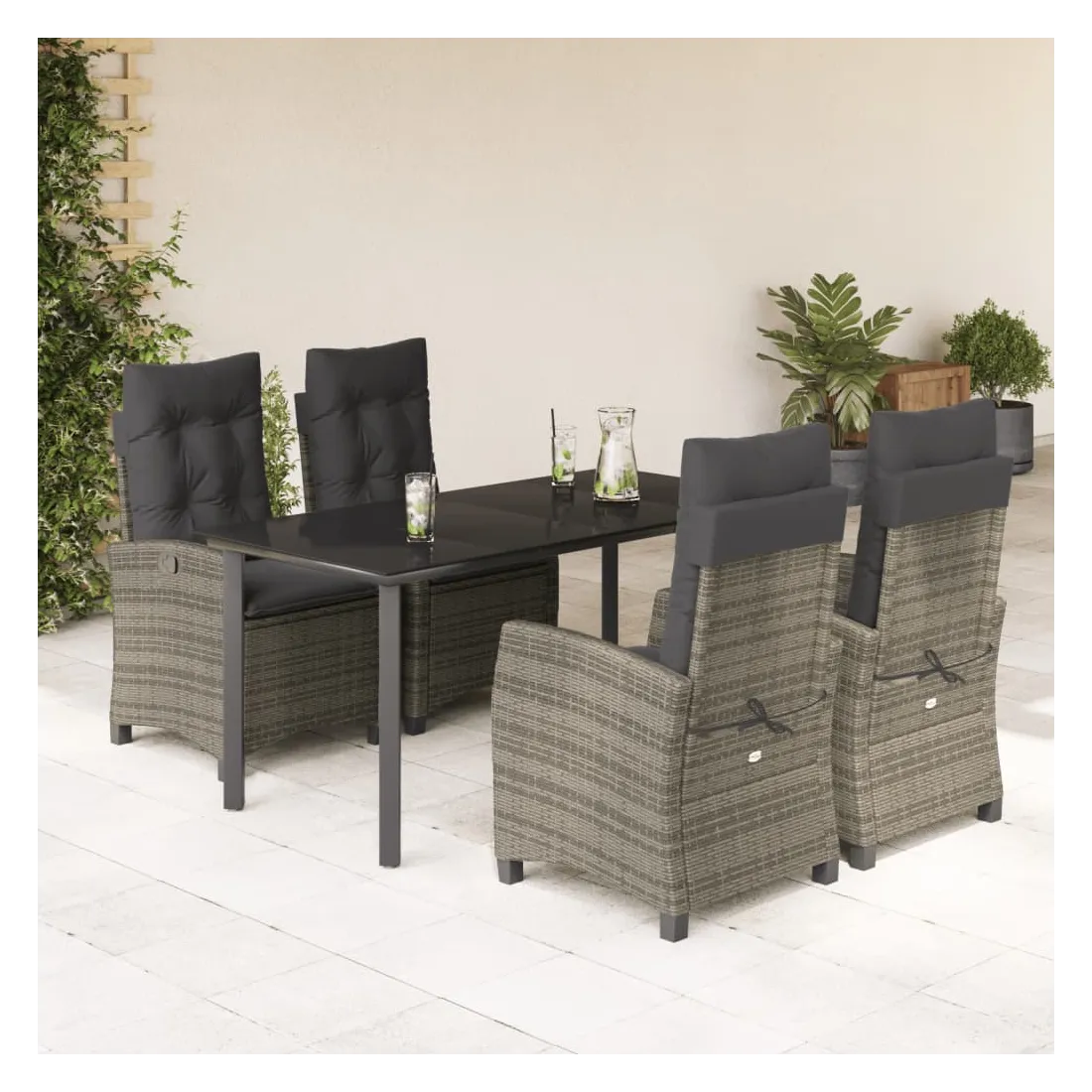 Cet ensemble de salle à manger de jardin est un excellent choix pour les repas en plein air ou pour vous détendre dans le jardin, l'arrière-cour ou le patio. Matériau durable : la résine tressée, également connue sous le nom de poly rotin, est un matériau synthétique solide et nécessitant peu d'entretien qui ressemble au rotin naturel. Il est léger, facile à nettoyer et couramment utilisé pour les meubles d'extérieur en raison de sa durabilité et de ses propriétés de résistance aux intempéries. Dossier réglable : ce siège de jardin est doté d'une poignée. Vous pouvez régler le dossier dans n'importe quelle position en tirant sur la poignée et le remettre rapidement dans sa position initiale.Dessus en verre : le dessus de la table d'extérieur est fabriqué en verre trempé solide et durable, ce qui le rend facile à nettoyer avec un chiffon humide et ajoute une touche d'élégance à votre espace extérieur. Expérience d'assise confortable : ce mobilier d'extérieur, doté de coussins épais, offre une expérience d'assise confortable. Housse amovible et lavable : ces coussins de siège sont dotés de housses amovibles pour un lavage et un entretien faciles. Bon à savoir :Pour que vos meubles d'extérieur restent beaux, nous vous recommandons de les protéger avec une housse imperméable.