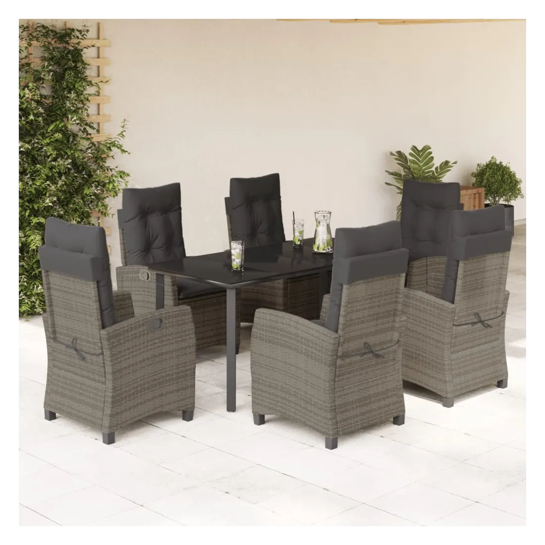 Cet ensemble de salle à manger de jardin est un excellent choix pour les repas en plein air ou pour vous détendre dans le jardin, l'arrière-cour ou le patio. Matériau durable : la résine tressée, également connue sous le nom de poly rotin, est un matériau synthétique solide et nécessitant peu d'entretien qui ressemble au rotin naturel. Il est léger, facile à nettoyer et couramment utilisé pour les meubles d'extérieur en raison de sa durabilité et de ses propriétés de résistance aux intempéries. Dossier réglable : ce siège de jardin est doté d'une poignée. Vous pouvez régler le dossier dans n'importe quelle position en tirant sur la poignée et le remettre rapidement dans sa position initiale.Dessus en verre : le dessus de la table d'extérieur est fabriqué en verre trempé solide et durable, ce qui le rend facile à nettoyer avec un chiffon humide et ajoute une touche d'élégance à votre espace extérieur. Expérience d'assise confortable : ce mobilier d'extérieur, doté de coussins épais, offre une expérience d'assise confortable. Housse amovible et lavable : ces coussins de siège sont dotés de housses amovibles pour un lavage et un entretien faciles. Bon à savoir :Pour que vos meubles d'extérieur restent beaux, nous vous recommandons de les protéger avec une housse imperméable.