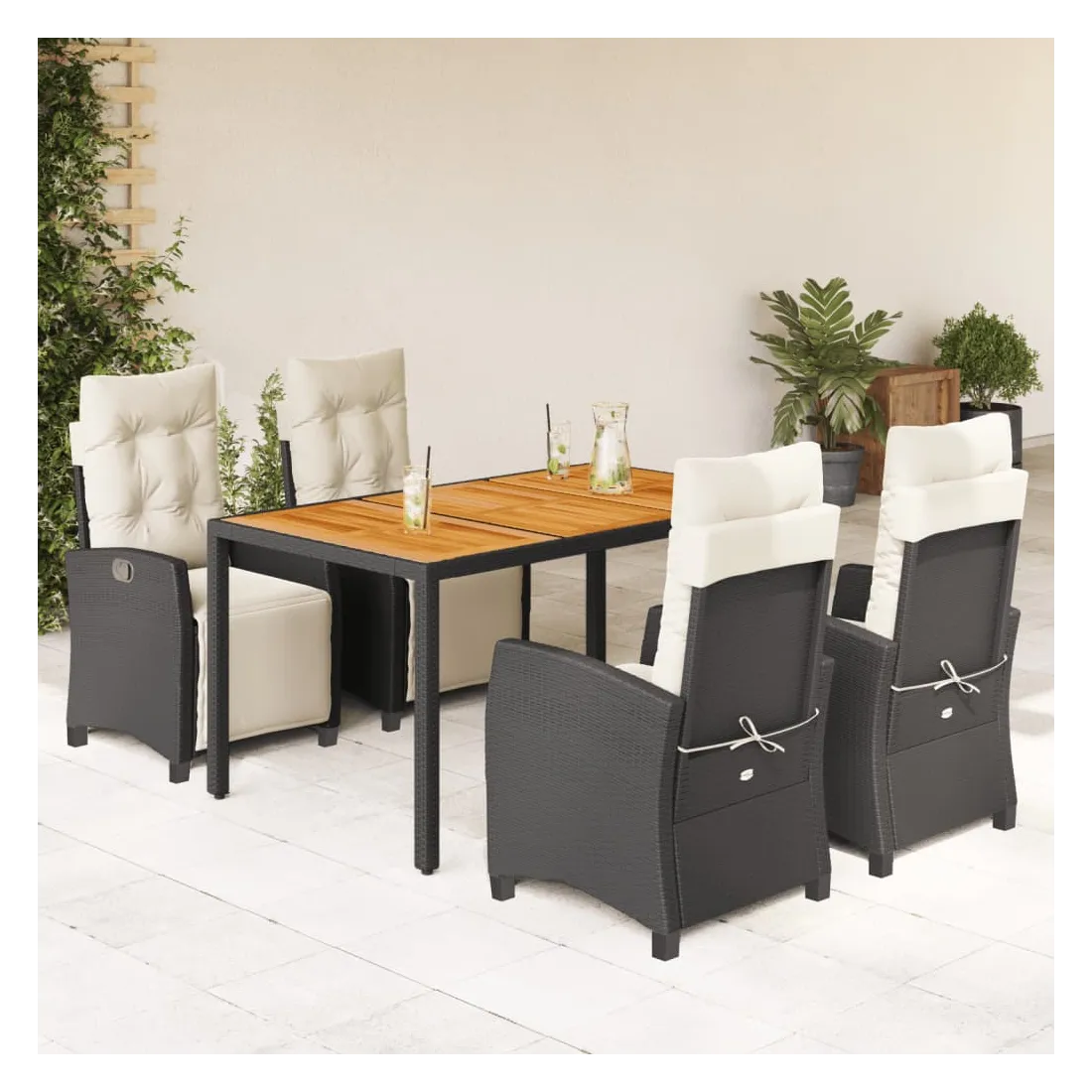 Cet ensemble de salle à manger de jardin est un excellent choix pour les repas en plein air ou pour vous détendre dans le jardin, l'arrière-cour ou le patio. Matériau durable : la résine tressée, également connue sous le nom de poly rotin, est un matériau synthétique solide et nécessitant peu d'entretien qui ressemble au rotin naturel. Il est léger, facile à nettoyer et couramment utilisé pour les meubles d'extérieur en raison de sa durabilité et de ses propriétés de résistance aux intempéries.Dossier et repose-pied réglables : ce siège de jardin est doté d'une poignée. Vous pouvez régler le dossier et le repose-pied dans n'importe quelle position en tirant sur la poignée, et les remettre rapidement dans leur position initiale.Dessus stable et facile à nettoyer : cette table de jardin a un dessus en bois d'acacia robuste, durable et facile à nettoyer avec un chiffon humide.Expérience d'assise confortable : ce mobilier d'extérieur, doté de coussins épais, offre une expérience d'assise confortable.Housse amovible et lavable : ces coussins de siège sont dotés de housses amovibles pour un lavage et un entretien faciles. Bon à savoir :Pour que vos meubles d'extérieur restent beaux, nous vous recommandons de les protéger avec une housse imperméable.