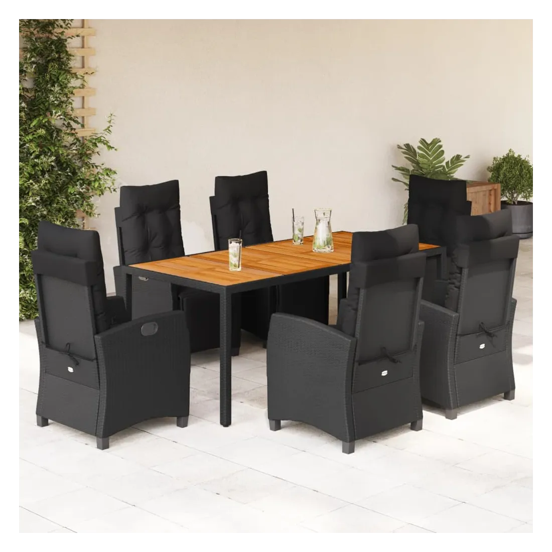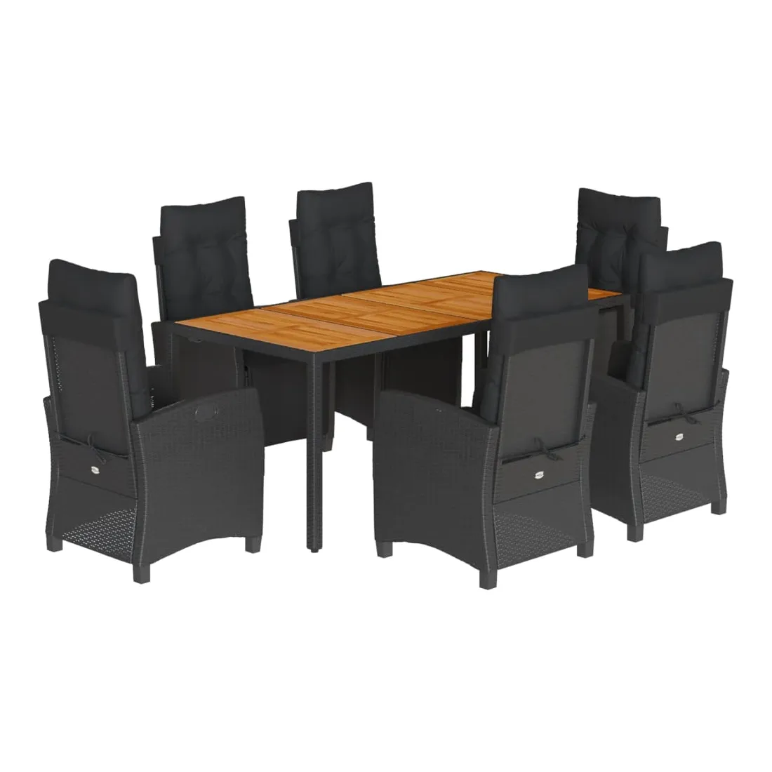 Cet ensemble de salle à manger de jardin est un excellent choix pour les repas en plein air ou pour vous détendre dans le jardin, l'arrière-cour ou le patio. Matériau durable : la résine tressée, également connue sous le nom de poly rotin, est un matériau synthétique solide et nécessitant peu d'entretien qui ressemble au rotin naturel. Il est léger, facile à nettoyer et couramment utilisé pour les meubles d'extérieur en raison de sa durabilité et de ses propriétés de résistance aux intempéries.Dossier et repose-pied réglables : ce siège de jardin est doté d'une poignée. Vous pouvez régler le dossier et le repose-pied dans n'importe quelle position en tirant sur la poignée, et les remettre rapidement dans leur position initiale.Dessus stable et facile à nettoyer : cette table de jardin a un dessus en bois d'acacia robuste, durable et facile à nettoyer avec un chiffon humide.Expérience d'assise confortable : ce mobilier d'extérieur, doté de coussins épais, offre une expérience d'assise confortable.Housse amovible et lavable : ces coussins de siège sont dotés de housses amovibles pour un lavage et un entretien faciles. Bon à savoir :Pour que vos meubles d'extérieur restent beaux, nous vous recommandons de les protéger avec une housse imperméable.