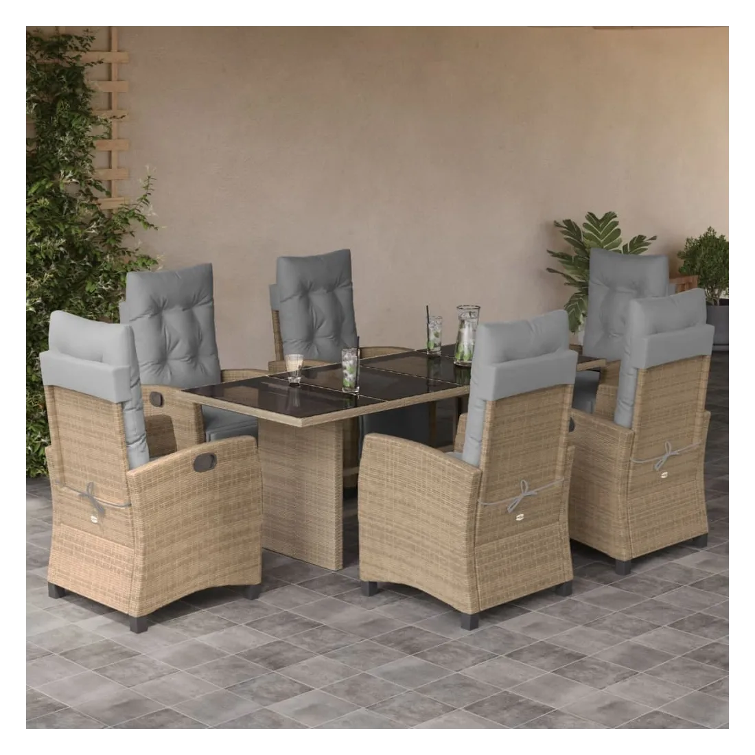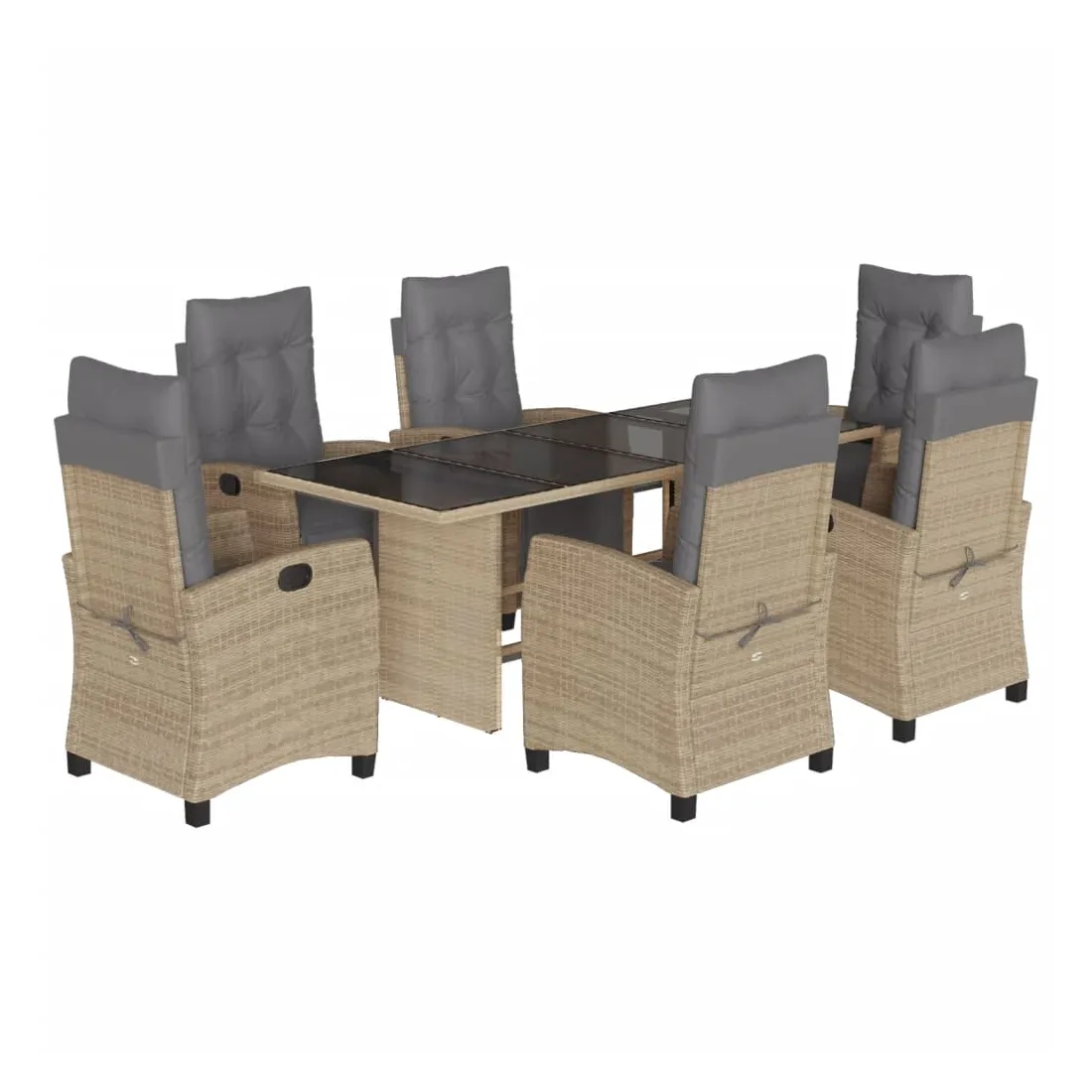 Ensemble à manger de jardin coussins 7 pcs mélange beige rotin