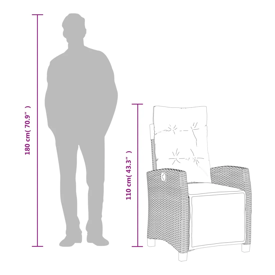 vidaXLCet ensemble de salle à manger de jardin est un excellent choix pour les repas en plein air ou pour vous détendre dans le jardin, l'arrière-cour ou le patio. Matériau durable : la résine tressée, également connue sous le nom de poly rotin, est un matériau synthétique solide et nécessitant peu d'entretien qui ressemble au rotin naturel. Il est léger, facile à nettoyer et couramment utilisé pour les meubles d'extérieur en raison de sa durabilité et de ses propriétés de résistance aux intempéries.Dossier et repose-pied réglables : ce siège de jardin est doté d'une poignée. Vous pouvez régler le dossier et le repose-pied dans n'importe quelle position en tirant sur la poignée, et les remettre rapidement dans leur position initiale.Dessus en verre : le dessus de la table d'extérieur est fabriqué en verre trempé solide et durable, ce qui le rend facile à nettoyer avec un chiffon humide et ajoute une touche d'élégance à votre espace extérieur.Expérience d'assise confortable : ce mobilier d'extérieur, doté de coussins épais, offre une expérience d'assise confortable.Housse amovible et lavable : ces coussins de siège sont dotés de housses amovibles pour un lavage et un entretien faciles. Bon à savoir :Pour que vos meubles d'extérieur restent beaux, nous vous recommandons de les protéger avec une housse imperméable.