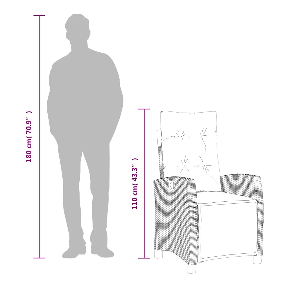 - Dimensions de l'assise : 57 x 66 x 93 cm (l x P x H)