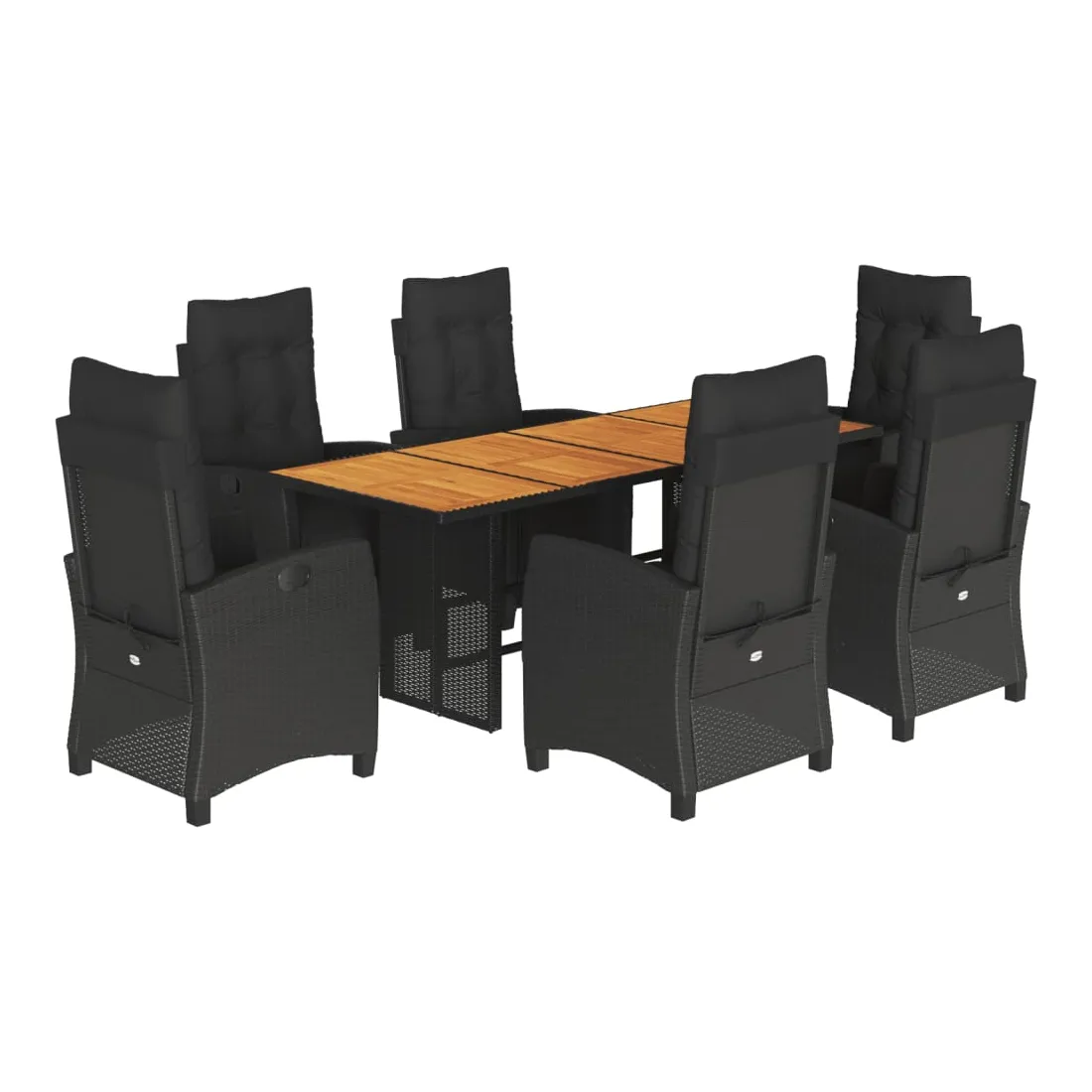 Cet ensemble de salle à manger de jardin est un excellent choix pour les repas en plein air ou pour vous détendre dans le jardin, l'arrière-cour ou le patio. Matériau durable : la résine tressée, également connue sous le nom de poly rotin, est un matériau synthétique solide et nécessitant peu d'entretien qui ressemble au rotin naturel. Il est léger, facile à nettoyer et couramment utilisé pour les meubles d'extérieur en raison de sa durabilité et de ses propriétés de résistance aux intempéries.Dossier et repose-pied réglables : ce siège de jardin est doté d'une poignée. Vous pouvez régler le dossier et le repose-pied dans n'importe quelle position en tirant sur la poignée, et les remettre rapidement dans leur position initiale.Dessus stable et facile à nettoyer : cette table de jardin a un dessus en bois d'acacia robuste, durable et facile à nettoyer avec un chiffon humide.Expérience d'assise confortable : ce mobilier d'extérieur, doté de coussins épais, offre une expérience d'assise confortable.Housse amovible et lavable : ces coussins de siège sont dotés de housses amovibles pour un lavage et un entretien faciles. Bon à savoir :Pour que vos meubles d'extérieur restent beaux, nous vous recommandons de les protéger avec une housse imperméable.