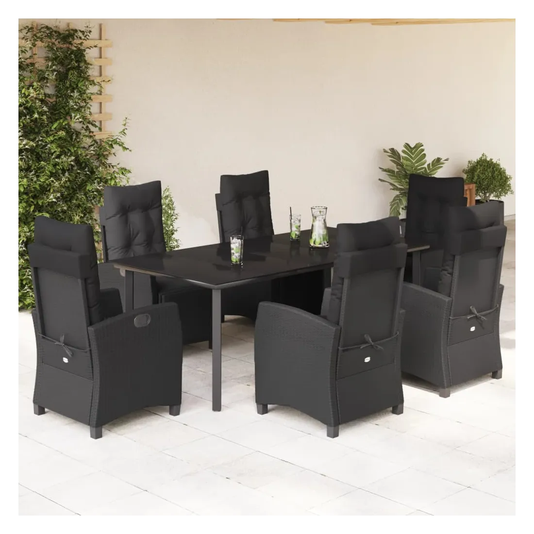 Cet ensemble de salle à manger de jardin est un excellent choix pour les repas en plein air ou pour vous détendre dans le jardin, l'arrière-cour ou le patio. Matériau durable : la résine tressée, également connue sous le nom de poly rotin, est un matériau synthétique solide et nécessitant peu d'entretien qui ressemble au rotin naturel. Il est léger, facile à nettoyer et couramment utilisé pour les meubles d'extérieur en raison de sa durabilité et de ses propriétés de résistance aux intempéries.Dossier et repose-pied réglables : ce siège de jardin est doté d'une poignée. Vous pouvez régler le dossier et le repose-pied dans n'importe quelle position en tirant sur la poignée, et les remettre rapidement dans leur position initiale.Dessus en verre : le dessus de la table d'extérieur est fabriqué en verre trempé solide et durable, ce qui le rend facile à nettoyer avec un chiffon humide et ajoute une touche d'élégance à votre espace extérieur.Expérience d'assise confortable : ce mobilier d'extérieur, doté de coussins épais, offre une expérience d'assise confortable.Housse amovible et lavable : ces coussins de siège sont dotés de housses amovibles pour un lavage et un entretien faciles. Bon à savoir :Pour que vos meubles d'extérieur restent beaux, nous vous recommandons de les protéger avec une housse imperméable.