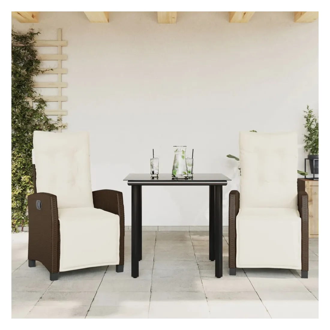 vidaXLCet ensemble de salle à manger de jardin est un excellent choix pour les repas en plein air ou pour vous détendre dans le jardin, l'arrière-cour ou le patio. Matériau durable : la résine tressée, également connue sous le nom de poly rotin, est un matériau synthétique solide et nécessitant peu d'entretien qui ressemble au rotin naturel. Il est léger, facile à nettoyer et couramment utilisé pour les meubles d'extérieur en raison de sa durabilité et de ses propriétés de résistance aux intempéries.Dossier et repose-pied réglables : ce siège de jardin est doté d'une poignée. Vous pouvez régler le dossier et le repose-pied dans n'importe quelle position en tirant sur la poignée, et les remettre rapidement dans leur position initiale.Dessus en verre : le dessus de la table d'extérieur est fabriqué en verre trempé solide et durable, ce qui le rend facile à nettoyer avec un chiffon humide et ajoute une touche d'élégance à votre espace extérieur.Expérience d'assise confortable : ce mobilier d'extérieur, doté de coussins épais, offre une expérience d'assise confortable.Housse amovible et lavable : ces coussins de siège sont dotés de housses amovibles pour un lavage et un entretien faciles. Bon à savoir :Pour que vos meubles d'extérieur restent beaux, nous vous recommandons de les protéger avec une housse imperméable.