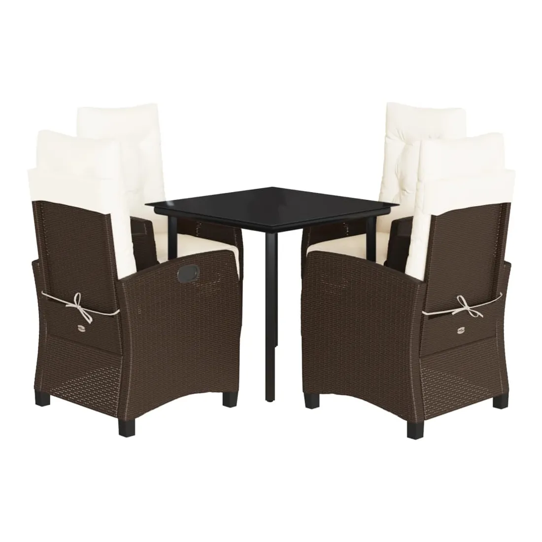 Ensemble à manger de jardin 5 pcs et coussins marron poly rotin