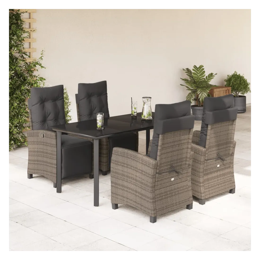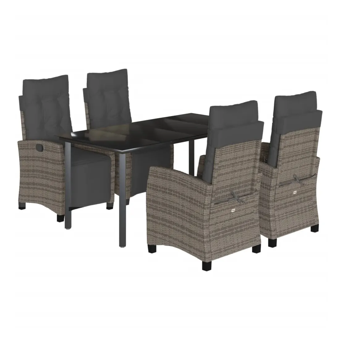 Cet ensemble de salle à manger de jardin est un excellent choix pour les repas en plein air ou pour vous détendre dans le jardin, l'arrière-cour ou le patio. Matériau durable : la résine tressée, également connue sous le nom de poly rotin, est un matériau synthétique solide et nécessitant peu d'entretien qui ressemble au rotin naturel. Il est léger, facile à nettoyer et couramment utilisé pour les meubles d'extérieur en raison de sa durabilité et de ses propriétés de résistance aux intempéries.Dossier et repose-pied réglables : ce siège de jardin est doté d'une poignée. Vous pouvez régler le dossier et le repose-pied dans n'importe quelle position en tirant sur la poignée, et les remettre rapidement dans leur position initiale.Dessus en verre : le dessus de la table d'extérieur est fabriqué en verre trempé solide et durable, ce qui le rend facile à nettoyer avec un chiffon humide et ajoute une touche d'élégance à votre espace extérieur.Expérience d'assise confortable : ce mobilier d'extérieur, doté de coussins épais, offre une expérience d'assise confortable.Housse amovible et lavable : ces coussins de siège sont dotés de housses amovibles pour un lavage et un entretien faciles. Bon à savoir :Pour que vos meubles d'extérieur restent beaux, nous vous recommandons de les protéger avec une housse imperméable.