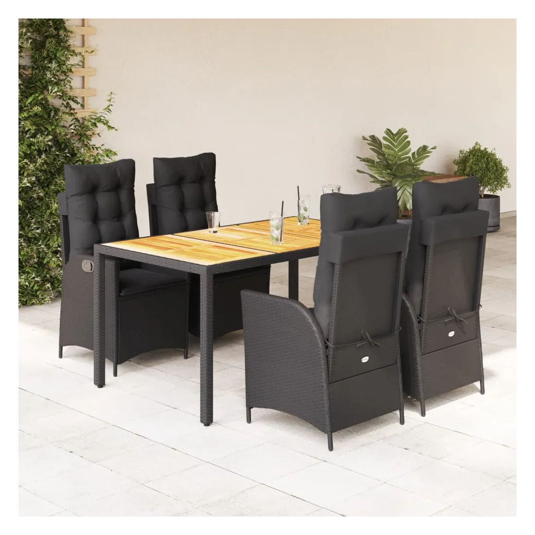Cet ensemble de salle à manger de jardin est un excellent choix pour les repas en plein air ou pour vous détendre dans le jardin, dans l'arrière-cour ou sur la terrasse. Matériau durable : la résine tressée, également connue sous le nom de poly rotin, est un matériau synthétique solide et nécessitant peu d'entretien qui ressemble au rotin naturel. Il est léger, facile à nettoyer et couramment utilisé pour les meubles d'extérieur en raison de sa durabilité et de ses propriétés de résistance aux intempéries.Dossier réglable : ce siège de jardin est doté d'une poignée. Vous pouvez régler le dossier dans n'importe quelle position en tirant sur la poignée et le remettre rapidement dans sa position initiale.Expérience d'assise confortable : ce mobilier d'extérieur, doté de coussins épais, offre une expérience d'assise confortable.Housse amovible et lavable : ces coussins de siège sont dotés de housses amovibles pour un lavage et un entretien faciles. Les coussins de dossier ont un rabat à l'arrière pour une fixation facile aux dossiers.Dessus stable et facile à nettoyer : cette table de jardin a un dessus en bois d'acacia robuste, durable et facile à nettoyer avec un chiffon humide. Bon à savoir : Pour que vos meubles d'extérieur restent beaux, nous vous recommandons de les protéger avec une housse imperméable.