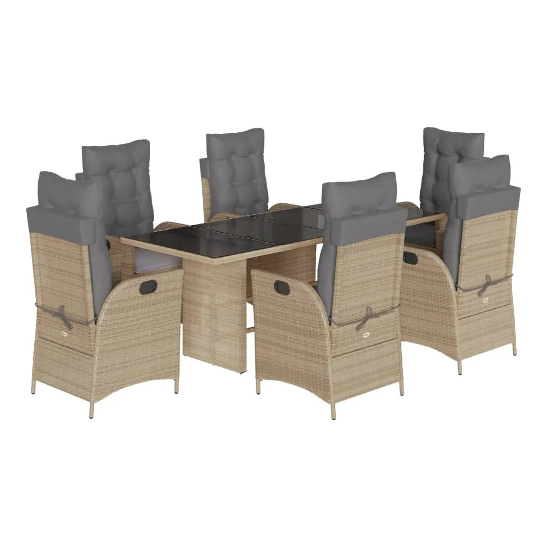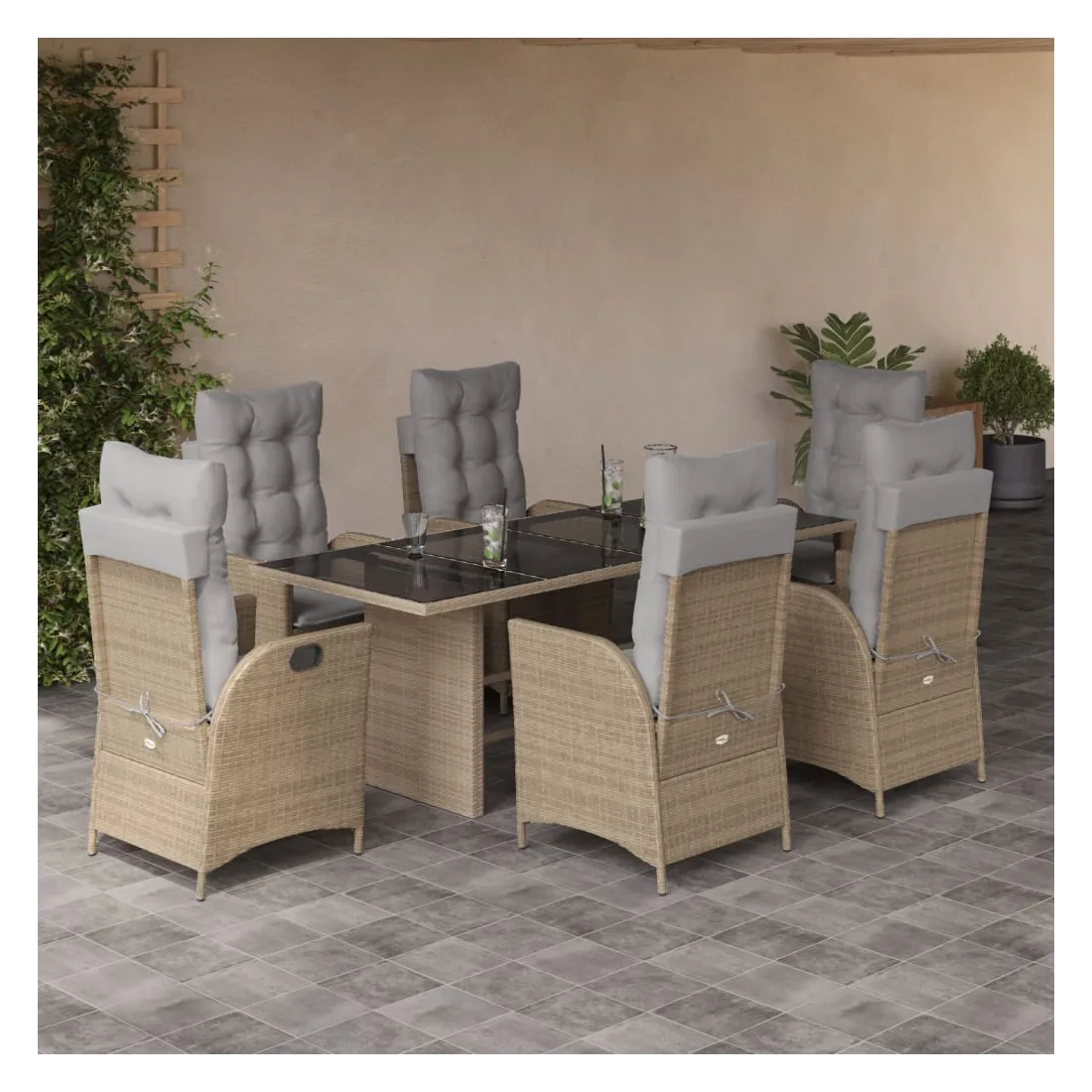 Cet ensemble de salle à manger de jardin est un excellent choix pour les repas en plein air ou pour vous détendre dans le jardin, dans l'arrière-cour ou sur la terrasse. Matériau durable : la résine tressée, également connue sous le nom de poly rotin, est un matériau synthétique solide et nécessitant peu d'entretien qui ressemble au rotin naturel. Il est léger, facile à nettoyer et couramment utilisé pour les meubles d'extérieur en raison de sa durabilité et de ses propriétés de résistance aux intempéries.Dossier réglable : ce siège de jardin est doté d'une poignée. Vous pouvez régler le dossier dans n'importe quelle position en tirant sur la poignée et le remettre rapidement dans sa position initiale.Expérience d'assise confortable : ce mobilier d'extérieur, doté de coussins épais, offre une expérience d'assise confortable.Housse amovible et lavable : ces coussins de siège sont dotés de housses amovibles pour un lavage et un entretien faciles. Les coussins de dossier ont un rabat à l'arrière pour une fixation facile aux dossiers.Dessus en verre : le dessus de la table d'extérieur est fabriqué en verre trempé solide et durable, ce qui le rend facile à nettoyer avec un chiffon humide et ajoute une touche d'élégance à votre espace extérieur. Bon à savoir : Pour que vos meubles d'extérieur restent beaux, nous vous recommandons de les protéger avec une housse imperméable.