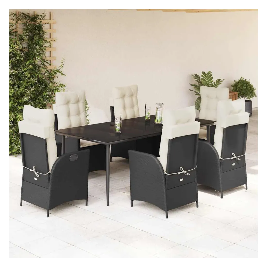 Cet ensemble de salle à manger de jardin est un excellent choix pour les repas en plein air ou pour vous détendre dans le jardin, dans l'arrière-cour ou sur la terrasse. Matériau durable : la résine tressée, également connue sous le nom de poly rotin, est un matériau synthétique solide et nécessitant peu d'entretien qui ressemble au rotin naturel. Il est léger, facile à nettoyer et couramment utilisé pour les meubles d'extérieur en raison de sa durabilité et de ses propriétés de résistance aux intempéries.Dossier réglable : ce siège de jardin est doté d'une poignée. Vous pouvez régler le dossier dans n'importe quelle position en tirant sur la poignée et le remettre rapidement dans sa position initiale.Expérience d'assise confortable : ce mobilier d'extérieur, doté de coussins épais, offre une expérience d'assise confortable.Housse amovible et lavable : ces coussins de siège sont dotés de housses amovibles pour un lavage et un entretien faciles. Les coussins de dossier ont un rabat à l'arrière pour une fixation facile aux dossiers.Dessus en verre : le dessus de la table d'extérieur est fabriqué en verre trempé solide et durable, ce qui le rend facile à nettoyer avec un chiffon humide et ajoute une touche d'élégance à votre espace extérieur. Bon à savoir : Pour que vos meubles d'extérieur restent beaux, nous vous recommandons de les protéger avec une housse imperméable.