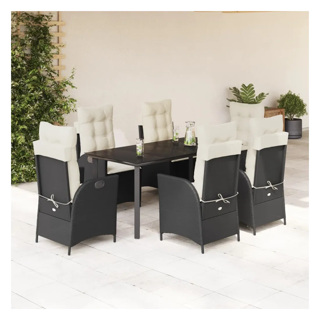 Cet ensemble de salle à manger de jardin est un excellent choix pour les repas en plein air ou pour vous détendre dans le jardin, dans l'arrière-cour ou sur la terrasse. Matériau durable : la résine tressée, également connue sous le nom de poly rotin, est un matériau synthétique solide et nécessitant peu d'entretien qui ressemble au rotin naturel. Il est léger, facile à nettoyer et couramment utilisé pour les meubles d'extérieur en raison de sa durabilité et de ses propriétés de résistance aux intempéries.Dossier réglable : ce siège de jardin est doté d'une poignée. Vous pouvez régler le dossier dans n'importe quelle position en tirant sur la poignée et le remettre rapidement dans sa position initiale.Expérience d'assise confortable : ce mobilier d'extérieur, doté de coussins épais, offre une expérience d'assise confortable.Housse amovible et lavable : ces coussins de siège sont dotés de housses amovibles pour un lavage et un entretien faciles. Les coussins de dossier ont un rabat à l'arrière pour une fixation facile aux dossiers.Dessus en verre : le dessus de la table d'extérieur est fabriqué en verre trempé solide et durable, ce qui le rend facile à nettoyer avec un chiffon humide et ajoute une touche d'élégance à votre espace extérieur. Bon à savoir : Pour que vos meubles d'extérieur restent beaux, nous vous recommandons de les protéger avec une housse imperméable.