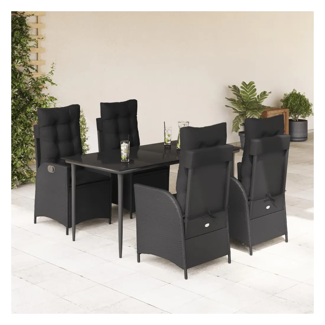 Cet ensemble de salle à manger de jardin est un excellent choix pour les repas en plein air ou pour vous détendre dans le jardin, dans l'arrière-cour ou sur la terrasse. Matériau durable : la résine tressée, également connue sous le nom de poly rotin, est un matériau synthétique solide et nécessitant peu d'entretien qui ressemble au rotin naturel. Il est léger, facile à nettoyer et couramment utilisé pour les meubles d'extérieur en raison de sa durabilité et de ses propriétés de résistance aux intempéries.Dossier réglable : ce siège de jardin est doté d'une poignée. Vous pouvez régler le dossier dans n'importe quelle position en tirant sur la poignée et le remettre rapidement dans sa position initiale.Expérience d'assise confortable : ce mobilier d'extérieur, doté de coussins épais, offre une expérience d'assise confortable.Housse amovible et lavable : ces coussins de siège sont dotés de housses amovibles pour un lavage et un entretien faciles. Les coussins de dossier ont un rabat à l'arrière pour une fixation facile aux dossiers.Dessus en verre : le dessus de la table d'extérieur est fabriqué en verre trempé solide et durable, ce qui le rend facile à nettoyer avec un chiffon humide et ajoute une touche d'élégance à votre espace extérieur. Bon à savoir : Pour que vos meubles d'extérieur restent beaux, nous vous recommandons de les protéger avec une housse imperméable.