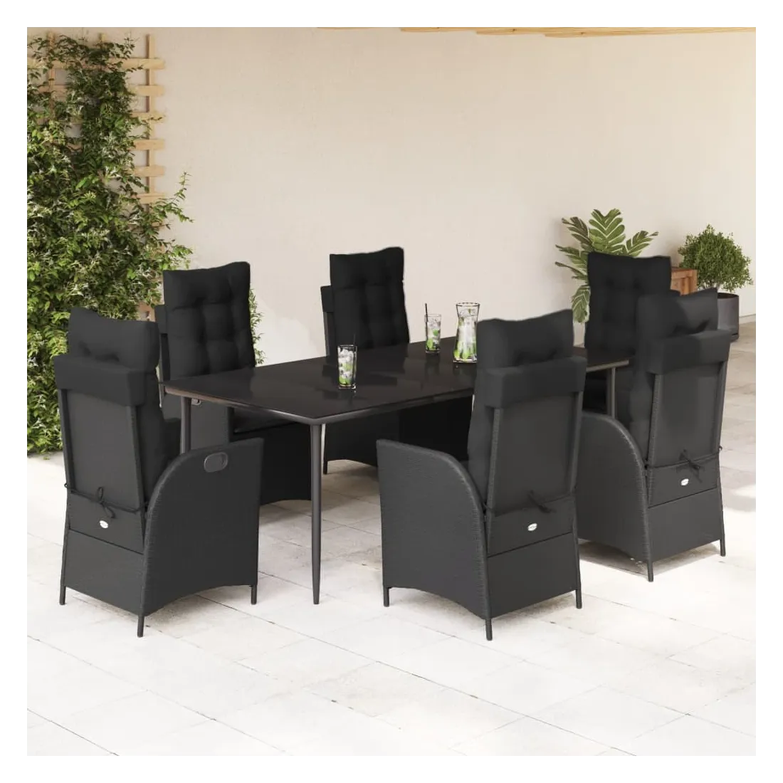 Cet ensemble de salle à manger de jardin est un excellent choix pour les repas en plein air ou pour vous détendre dans le jardin, dans l'arrière-cour ou sur la terrasse. Matériau durable : la résine tressée, également connue sous le nom de poly rotin, est un matériau synthétique solide et nécessitant peu d'entretien qui ressemble au rotin naturel. Il est léger, facile à nettoyer et couramment utilisé pour les meubles d'extérieur en raison de sa durabilité et de ses propriétés de résistance aux intempéries.Dossier réglable : ce siège de jardin est doté d'une poignée. Vous pouvez régler le dossier dans n'importe quelle position en tirant sur la poignée et le remettre rapidement dans sa position initiale.Expérience d'assise confortable : ce mobilier d'extérieur, doté de coussins épais, offre une expérience d'assise confortable.Housse amovible et lavable : ces coussins de siège sont dotés de housses amovibles pour un lavage et un entretien faciles. Les coussins de dossier ont un rabat à l'arrière pour une fixation facile aux dossiers.Dessus en verre : le dessus de la table d'extérieur est fabriqué en verre trempé solide et durable, ce qui le rend facile à nettoyer avec un chiffon humide et ajoute une touche d'élégance à votre espace extérieur. Bon à savoir : Pour que vos meubles d'extérieur restent beaux, nous vous recommandons de les protéger avec une housse imperméable.