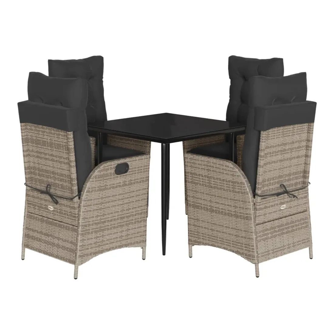 Cet ensemble de salle à manger de jardin est un excellent choix pour les repas en plein air ou pour vous détendre dans le jardin, dans l'arrière-cour ou sur la terrasse. Matériau durable : la résine tressée, également connue sous le nom de poly rotin, est un matériau synthétique solide et nécessitant peu d'entretien qui ressemble au rotin naturel. Il est léger, facile à nettoyer et couramment utilisé pour les meubles d'extérieur en raison de sa durabilité et de ses propriétés de résistance aux intempéries.Dossier réglable : ce siège de jardin est doté d'une poignée. Vous pouvez régler le dossier dans n'importe quelle position en tirant sur la poignée et le remettre rapidement dans sa position initiale.Expérience d'assise confortable : ce mobilier d'extérieur, doté de coussins épais, offre une expérience d'assise confortable.Housse amovible et lavable : ces coussins de siège sont dotés de housses amovibles pour un lavage et un entretien faciles. Les coussins de dossier ont un rabat à l'arrière pour une fixation facile aux dossiers.Dessus en verre : le dessus de la table d'extérieur est fabriqué en verre trempé solide et durable, ce qui le rend facile à nettoyer avec un chiffon humide et ajoute une touche d'élégance à votre espace extérieur. Bon à savoir : Pour que vos meubles d'extérieur restent beaux, nous vous recommandons de les protéger avec une housse imperméable.