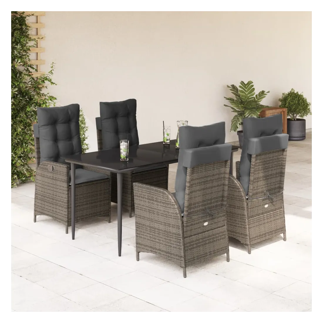 Cet ensemble de salle à manger de jardin est un excellent choix pour les repas en plein air ou pour vous détendre dans le jardin, dans l'arrière-cour ou sur la terrasse. Matériau durable : la résine tressée, également connue sous le nom de poly rotin, est un matériau synthétique solide et nécessitant peu d'entretien qui ressemble au rotin naturel. Il est léger, facile à nettoyer et couramment utilisé pour les meubles d'extérieur en raison de sa durabilité et de ses propriétés de résistance aux intempéries.Dossier réglable : ce siège de jardin est doté d'une poignée. Vous pouvez régler le dossier dans n'importe quelle position en tirant sur la poignée et le remettre rapidement dans sa position initiale.Expérience d'assise confortable : ce mobilier d'extérieur, doté de coussins épais, offre une expérience d'assise confortable.Housse amovible et lavable : ces coussins de siège sont dotés de housses amovibles pour un lavage et un entretien faciles. Les coussins de dossier ont un rabat à l'arrière pour une fixation facile aux dossiers.Dessus en verre : le dessus de la table d'extérieur est fabriqué en verre trempé solide et durable, ce qui le rend facile à nettoyer avec un chiffon humide et ajoute une touche d'élégance à votre espace extérieur. Bon à savoir : Pour que vos meubles d'extérieur restent beaux, nous vous recommandons de les protéger avec une housse imperméable.