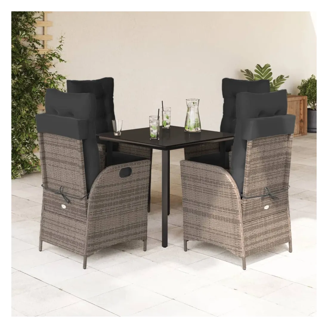 Cet ensemble de salle à manger de jardin est un excellent choix pour les repas en plein air ou pour vous détendre dans le jardin, dans l'arrière-cour ou sur la terrasse. Matériau durable : la résine tressée, également connue sous le nom de poly rotin, est un matériau synthétique solide et nécessitant peu d'entretien qui ressemble au rotin naturel. Il est léger, facile à nettoyer et couramment utilisé pour les meubles d'extérieur en raison de sa durabilité et de ses propriétés de résistance aux intempéries.Dossier réglable : ce siège de jardin est doté d'une poignée. Vous pouvez régler le dossier dans n'importe quelle position en tirant sur la poignée et le remettre rapidement dans sa position initiale.Expérience d'assise confortable : ce mobilier d'extérieur, doté de coussins épais, offre une expérience d'assise confortable.Housse amovible et lavable : ces coussins de siège sont dotés de housses amovibles pour un lavage et un entretien faciles. Les coussins de dossier ont un rabat à l'arrière pour une fixation facile aux dossiers.Dessus en verre : le dessus de la table d'extérieur est fabriqué en verre trempé solide et durable, ce qui le rend facile à nettoyer avec un chiffon humide et ajoute une touche d'élégance à votre espace extérieur. Bon à savoir : Pour que vos meubles d'extérieur restent beaux, nous vous recommandons de les protéger avec une housse imperméable.
