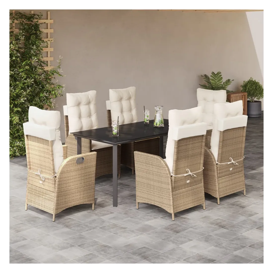 Cet ensemble de salle à manger de jardin est un excellent choix pour les repas en plein air ou pour vous détendre dans le jardin, dans l'arrière-cour ou sur la terrasse. Matériau durable : la résine tressée, également connue sous le nom de poly rotin, est un matériau synthétique solide et nécessitant peu d'entretien qui ressemble au rotin naturel. Il est léger, facile à nettoyer et couramment utilisé pour les meubles d'extérieur en raison de sa durabilité et de ses propriétés de résistance aux intempéries.Dossier réglable : ce siège de jardin est doté d'une poignée. Vous pouvez régler le dossier dans n'importe quelle position en tirant sur la poignée et le remettre rapidement dans sa position initiale.Expérience d'assise confortable : ce mobilier d'extérieur, doté de coussins épais, offre une expérience d'assise confortable.Housse amovible et lavable : ces coussins de siège sont dotés de housses amovibles pour un lavage et un entretien faciles. Les coussins de dossier ont un rabat à l'arrière pour une fixation facile aux dossiers.Dessus en verre : le dessus de la table d'extérieur est fabriqué en verre trempé solide et durable, ce qui le rend facile à nettoyer avec un chiffon humide et ajoute une touche d'élégance à votre espace extérieur. Bon à savoir : Pour que vos meubles d'extérieur restent beaux, nous vous recommandons de les protéger avec une housse imperméable.