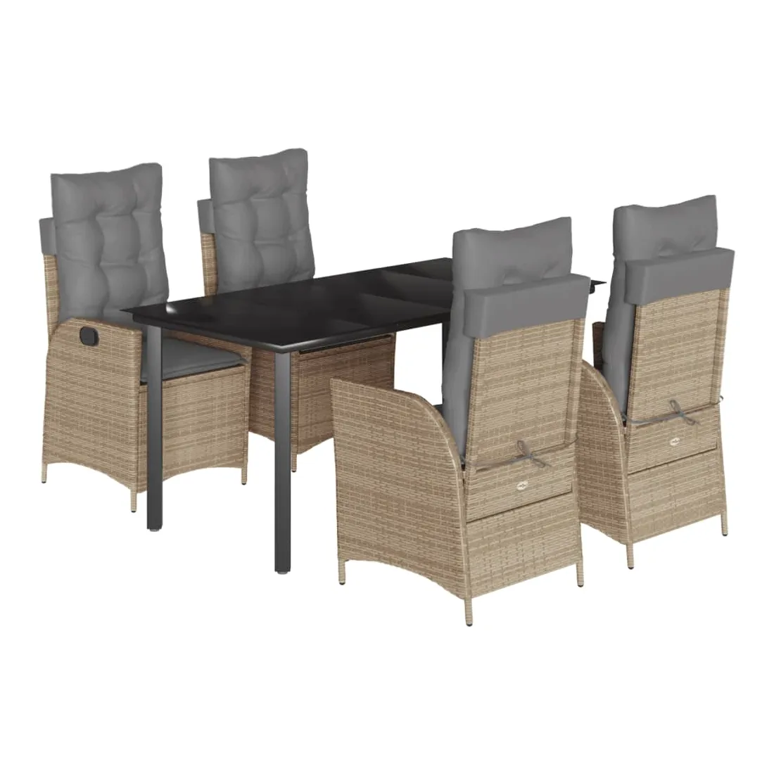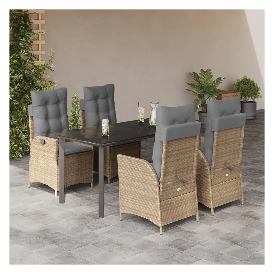 Cet ensemble de salle à manger de jardin est un excellent choix pour les repas en plein air ou pour vous détendre dans le jardin, dans l'arrière-cour ou sur la terrasse. Matériau durable : la résine tressée, également connue sous le nom de poly rotin, est un matériau synthétique solide et nécessitant peu d'entretien qui ressemble au rotin naturel. Il est léger, facile à nettoyer et couramment utilisé pour les meubles d'extérieur en raison de sa durabilité et de ses propriétés de résistance aux intempéries.Dossier réglable : ce siège de jardin est doté d'une poignée. Vous pouvez régler le dossier dans n'importe quelle position en tirant sur la poignée et le remettre rapidement dans sa position initiale.Expérience d'assise confortable : ce mobilier d'extérieur, doté de coussins épais, offre une expérience d'assise confortable.Housse amovible et lavable : ces coussins de siège sont dotés de housses amovibles pour un lavage et un entretien faciles. Les coussins de dossier ont un rabat à l'arrière pour une fixation facile aux dossiers.Dessus en verre : le dessus de la table d'extérieur est fabriqué en verre trempé solide et durable, ce qui le rend facile à nettoyer avec un chiffon humide et ajoute une touche d'élégance à votre espace extérieur. Bon à savoir : Pour que vos meubles d'extérieur restent beaux, nous vous recommandons de les protéger avec une housse imperméable.