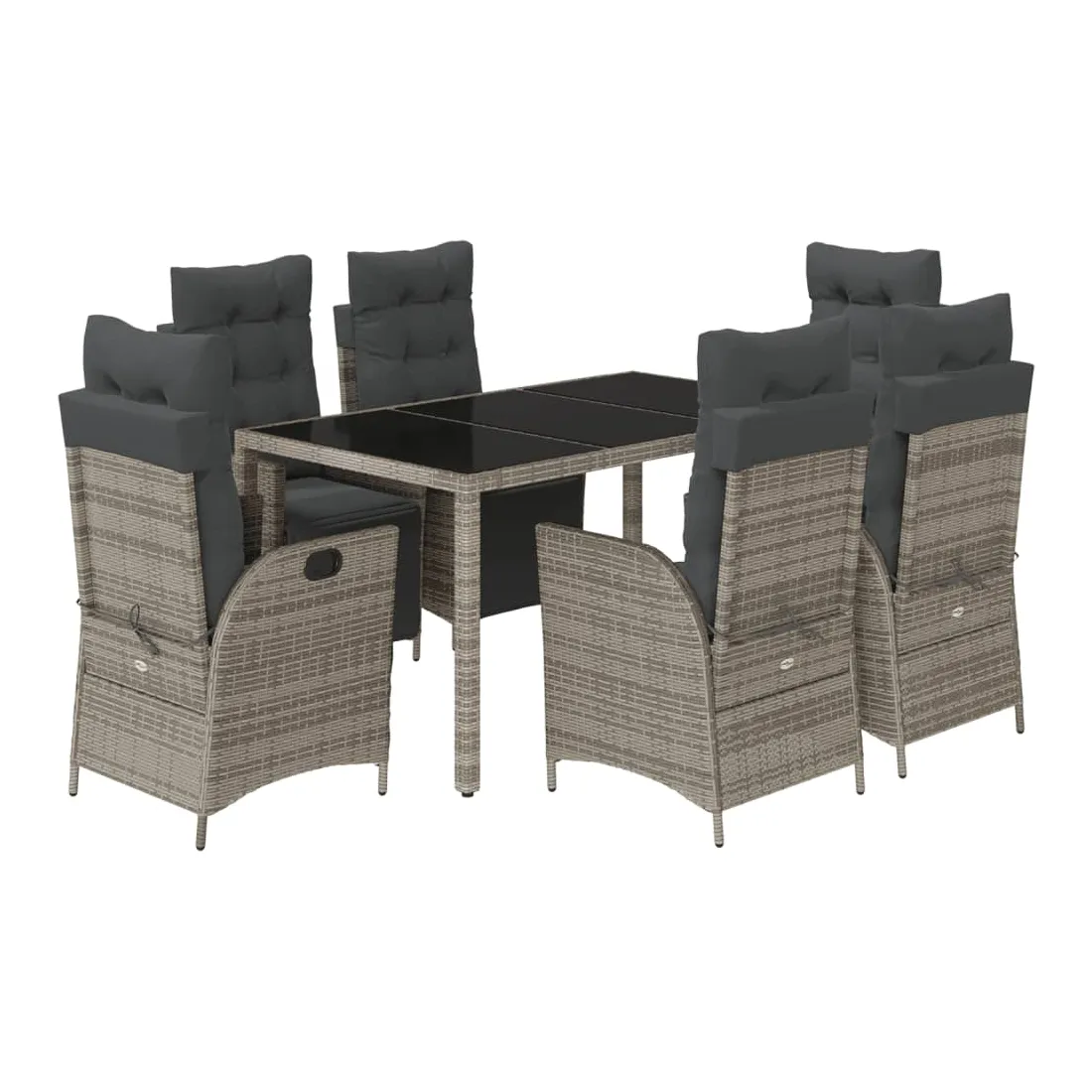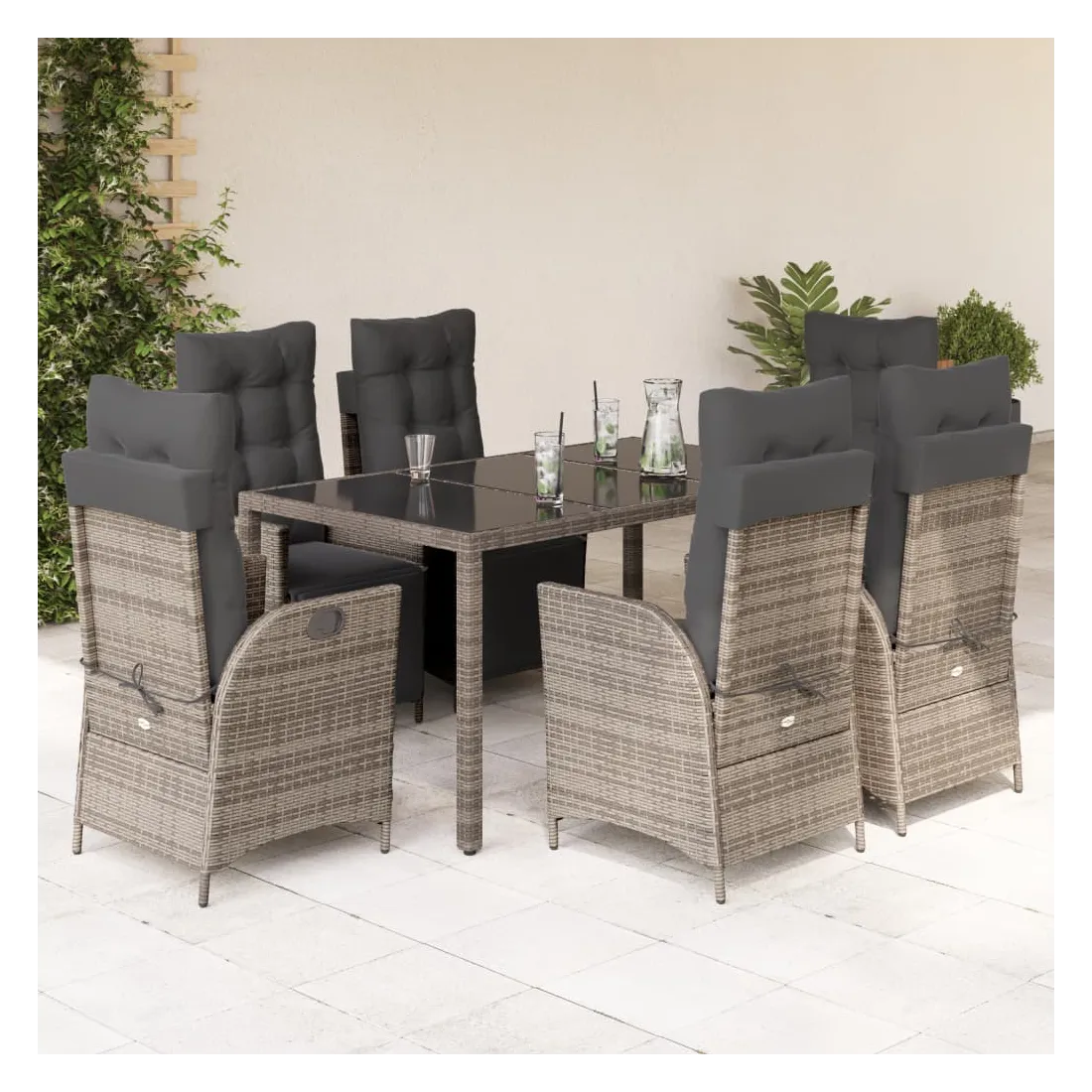 Cet ensemble de salle à manger de jardin est un excellent choix pour les repas en plein air ou pour vous détendre dans le jardin, l'arrière-cour ou le patio. Matériau durable : la résine tressée, également connue sous le nom de poly rotin, est un matériau synthétique solide et nécessitant peu d'entretien qui ressemble au rotin naturel. Il est léger, facile à nettoyer et couramment utilisé pour les meubles d'extérieur en raison de sa durabilité et de ses propriétés de résistance aux intempéries.Dossier et repose-pied réglables : ce siège de jardin est doté d'une poignée. Vous pouvez régler le dossier et le repose-pied dans n'importe quelle position en tirant sur la poignée, et les remettre rapidement dans leur position initiale.Expérience d'assise confortable : ce mobilier d'extérieur, doté de coussins épais, offre une expérience d'assise confortable.Housse amovible et lavable : ces coussins de siège sont dotés de housses amovibles pour un lavage et un entretien faciles. Les coussins de dossier ont un rabat à l'arrière pour une fixation facile aux dossiers.Dessus en verre : le dessus de la table d'extérieur est fabriqué en verre trempé solide et durable, ce qui le rend facile à nettoyer avec un chiffon humide et ajoute une touche d'élégance à votre espace extérieur. Bon à savoir :Pour que vos meubles d'extérieur restent beaux, nous vous recommandons de les protéger avec une housse imperméable.