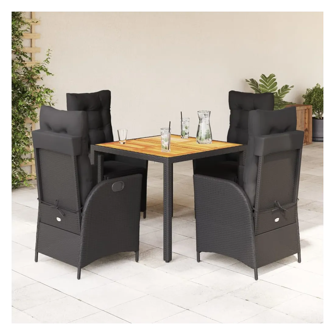 Cet ensemble de salle à manger de jardin est un excellent choix pour les repas en plein air ou pour vous détendre dans le jardin, l'arrière-cour ou le patio. Matériau durable : la résine tressée, également connue sous le nom de poly rotin, est un matériau synthétique solide et nécessitant peu d'entretien qui ressemble au rotin naturel. Il est léger, facile à nettoyer et couramment utilisé pour les meubles d'extérieur en raison de sa durabilité et de ses propriétés de résistance aux intempéries.Dossier et repose-pied réglables : ce siège de jardin est doté d'une poignée. Vous pouvez régler le dossier et le repose-pied dans n'importe quelle position en tirant sur la poignée, et les remettre rapidement dans leur position initiale.Expérience d'assise confortable : ce mobilier d'extérieur, doté de coussins épais, offre une expérience d'assise confortable.Housse amovible et lavable : ces coussins de siège sont dotés de housses amovibles pour un lavage et un entretien faciles. Les coussins de dossier ont un rabat à l'arrière pour une fixation facile aux dossiers.Dessus stable et facile à nettoyer : cette table de jardin a un dessus en bois d'acacia robuste, durable et facile à nettoyer avec un chiffon humide. Bon à savoir :Pour que vos meubles d'extérieur restent beaux, nous vous recommandons de les protéger avec une housse imperméable.