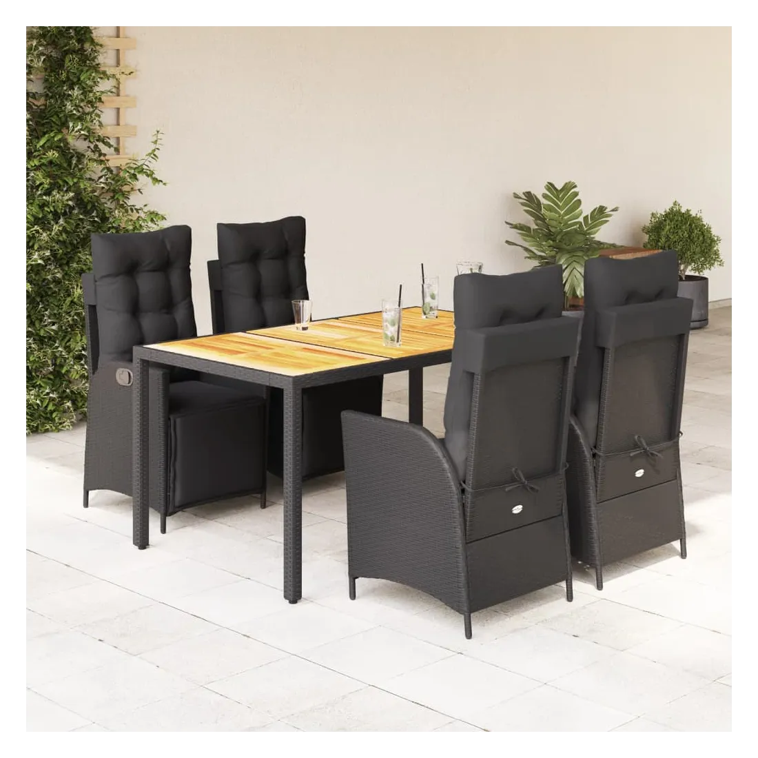 Cet ensemble de salle à manger de jardin est un excellent choix pour les repas en plein air ou pour vous détendre dans le jardin, l'arrière-cour ou le patio. Matériau durable : la résine tressée, également connue sous le nom de poly rotin, est un matériau synthétique solide et nécessitant peu d'entretien qui ressemble au rotin naturel. Il est léger, facile à nettoyer et couramment utilisé pour les meubles d'extérieur en raison de sa durabilité et de ses propriétés de résistance aux intempéries.Dossier et repose-pied réglables : ce siège de jardin est doté d'une poignée. Vous pouvez régler le dossier et le repose-pied dans n'importe quelle position en tirant sur la poignée, et les remettre rapidement dans leur position initiale.Expérience d'assise confortable : ce mobilier d'extérieur, doté de coussins épais, offre une expérience d'assise confortable.Housse amovible et lavable : ces coussins de siège sont dotés de housses amovibles pour un lavage et un entretien faciles. Les coussins de dossier ont un rabat à l'arrière pour une fixation facile aux dossiers.Dessus stable et facile à nettoyer : cette table de jardin a un dessus en bois d'acacia robuste, durable et facile à nettoyer avec un chiffon humide. Bon à savoir :Pour que vos meubles d'extérieur restent beaux, nous vous recommandons de les protéger avec une housse imperméable.