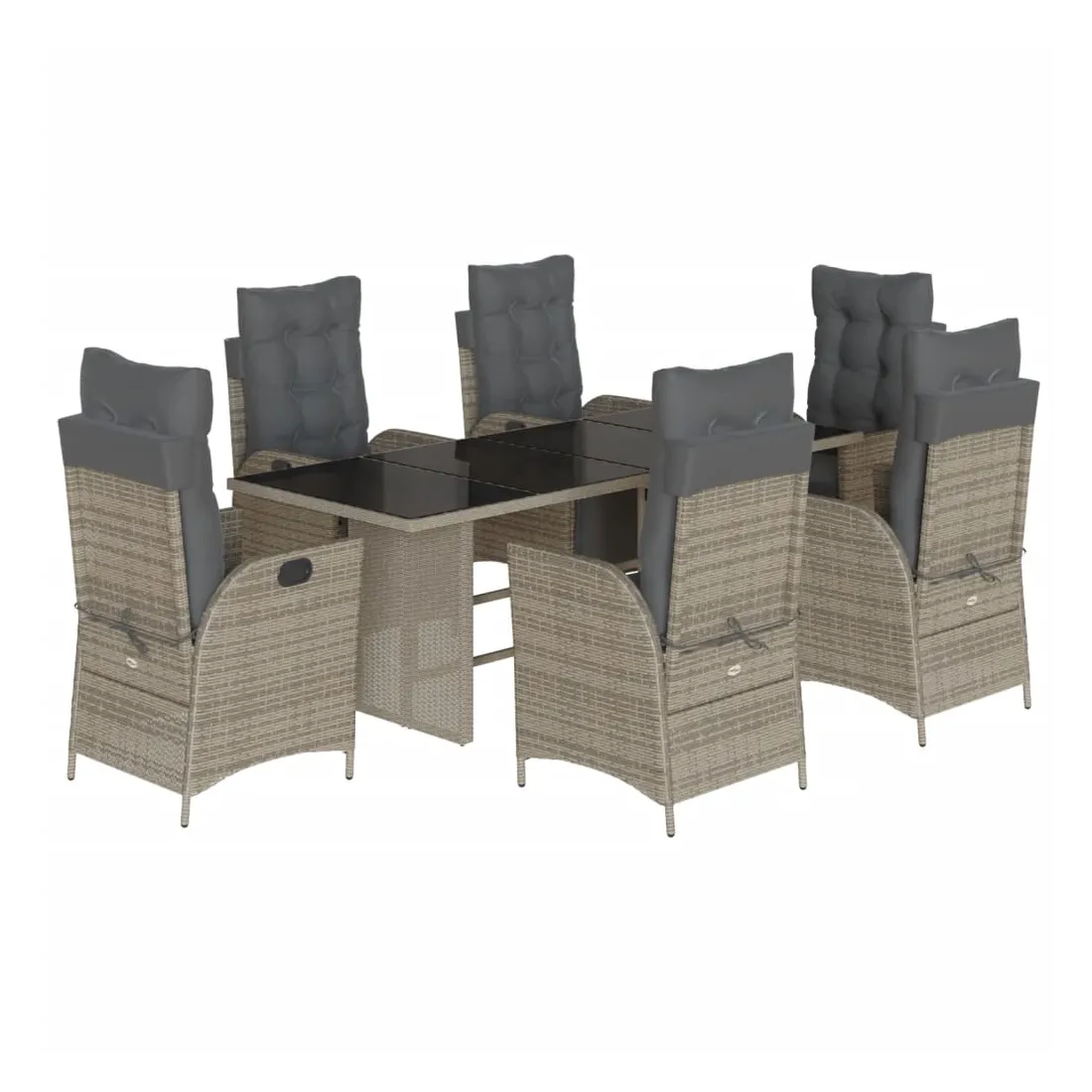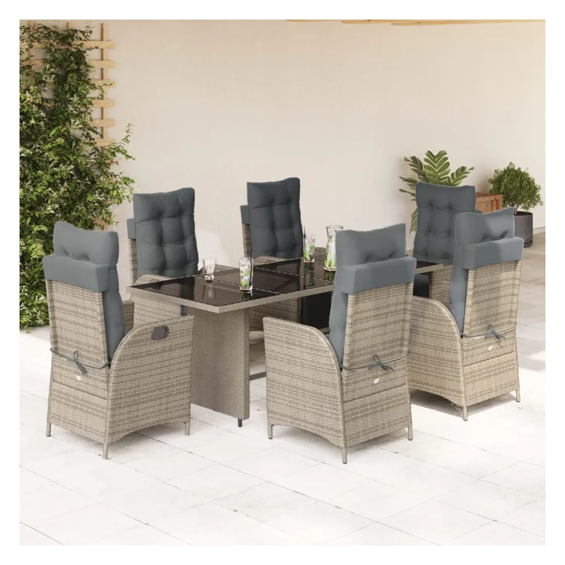 Cet ensemble de salle à manger de jardin est un excellent choix pour les repas en plein air ou pour vous détendre dans le jardin, l'arrière-cour ou le patio. Matériau durable : la résine tressée, également connue sous le nom de poly rotin, est un matériau synthétique solide et nécessitant peu d'entretien qui ressemble au rotin naturel. Il est léger, facile à nettoyer et couramment utilisé pour les meubles d'extérieur en raison de sa durabilité et de ses propriétés de résistance aux intempéries.Dossier et repose-pied réglables : ce siège de jardin est doté d'une poignée. Vous pouvez régler le dossier et le repose-pied dans n'importe quelle position en tirant sur la poignée, et les remettre rapidement dans leur position initiale.Expérience d'assise confortable : ce mobilier d'extérieur, doté de coussins épais, offre une expérience d'assise confortable.Housse amovible et lavable : ces coussins de siège sont dotés de housses amovibles pour un lavage et un entretien faciles. Les coussins de dossier ont un rabat à l'arrière pour une fixation facile aux dossiers.Dessus en verre : le dessus de la table d'extérieur est fabriqué en verre trempé solide et durable, ce qui le rend facile à nettoyer avec un chiffon humide et ajoute une touche d'élégance à votre espace extérieur. Bon à savoir :Pour que vos meubles d'extérieur restent beaux, nous vous recommandons de les protéger avec une housse imperméable.