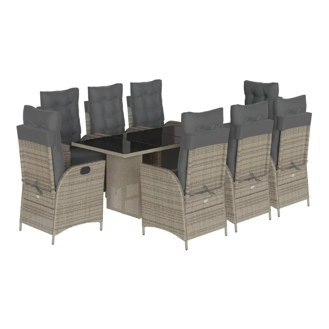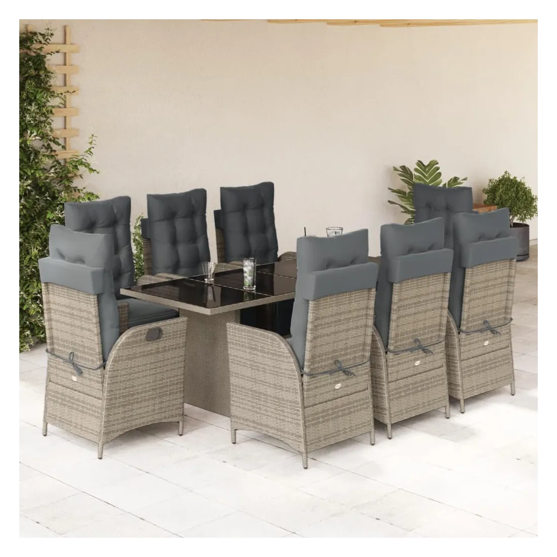 Cet ensemble de salle à manger de jardin est un excellent choix pour les repas en plein air ou pour vous détendre dans le jardin, l'arrière-cour ou le patio. Matériau durable : la résine tressée, également connue sous le nom de poly rotin, est un matériau synthétique solide et nécessitant peu d'entretien qui ressemble au rotin naturel. Il est léger, facile à nettoyer et couramment utilisé pour les meubles d'extérieur en raison de sa durabilité et de ses propriétés de résistance aux intempéries.Dossier et repose-pied réglables : ce siège de jardin est doté d'une poignée. Vous pouvez régler le dossier et le repose-pied dans n'importe quelle position en tirant sur la poignée, et les remettre rapidement dans leur position initiale.Expérience d'assise confortable : ce mobilier d'extérieur, doté de coussins épais, offre une expérience d'assise confortable.Housse amovible et lavable : ces coussins de siège sont dotés de housses amovibles pour un lavage et un entretien faciles. Les coussins de dossier ont un rabat à l'arrière pour une fixation facile aux dossiers.Dessus en verre : le dessus de la table d'extérieur est fabriqué en verre trempé solide et durable, ce qui le rend facile à nettoyer avec un chiffon humide et ajoute une touche d'élégance à votre espace extérieur. Bon à savoir :Pour que vos meubles d'extérieur restent beaux, nous vous recommandons de les protéger avec une housse imperméable.