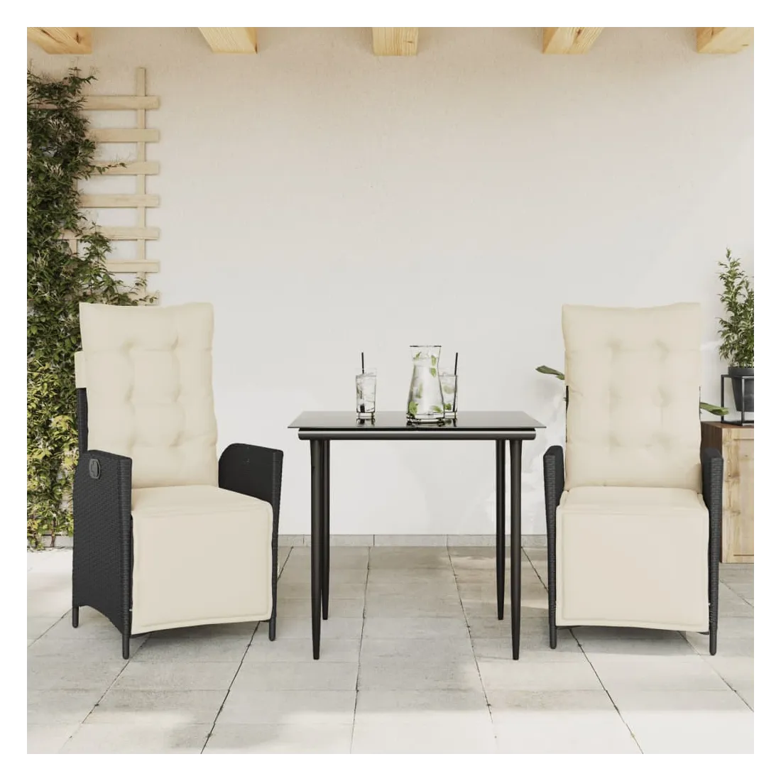 Cet ensemble de salle à manger de jardin est un excellent choix pour les repas en plein air ou pour vous détendre dans le jardin, l'arrière-cour ou le patio. Matériau durable : la résine tressée, également connue sous le nom de poly rotin, est un matériau synthétique solide et nécessitant peu d'entretien qui ressemble au rotin naturel. Il est léger, facile à nettoyer et couramment utilisé pour les meubles d'extérieur en raison de sa durabilité et de ses propriétés de résistance aux intempéries.Dossier et repose-pied réglables : ce siège de jardin est doté d'une poignée. Vous pouvez régler le dossier et le repose-pied dans n'importe quelle position en tirant sur la poignée, et les remettre rapidement dans leur position initiale.Expérience d'assise confortable : ce mobilier d'extérieur, doté de coussins épais, offre une expérience d'assise confortable.Housse amovible et lavable : ces coussins de siège sont dotés de housses amovibles pour un lavage et un entretien faciles. Les coussins de dossier ont un rabat à l'arrière pour une fixation facile aux dossiers.Dessus en verre : le dessus de la table d'extérieur est fabriqué en verre trempé solide et durable, ce qui le rend facile à nettoyer avec un chiffon humide et ajoute une touche d'élégance à votre espace extérieur. Bon à savoir :Pour que vos meubles d'extérieur restent beaux, nous vous recommandons de les protéger avec une housse imperméable.