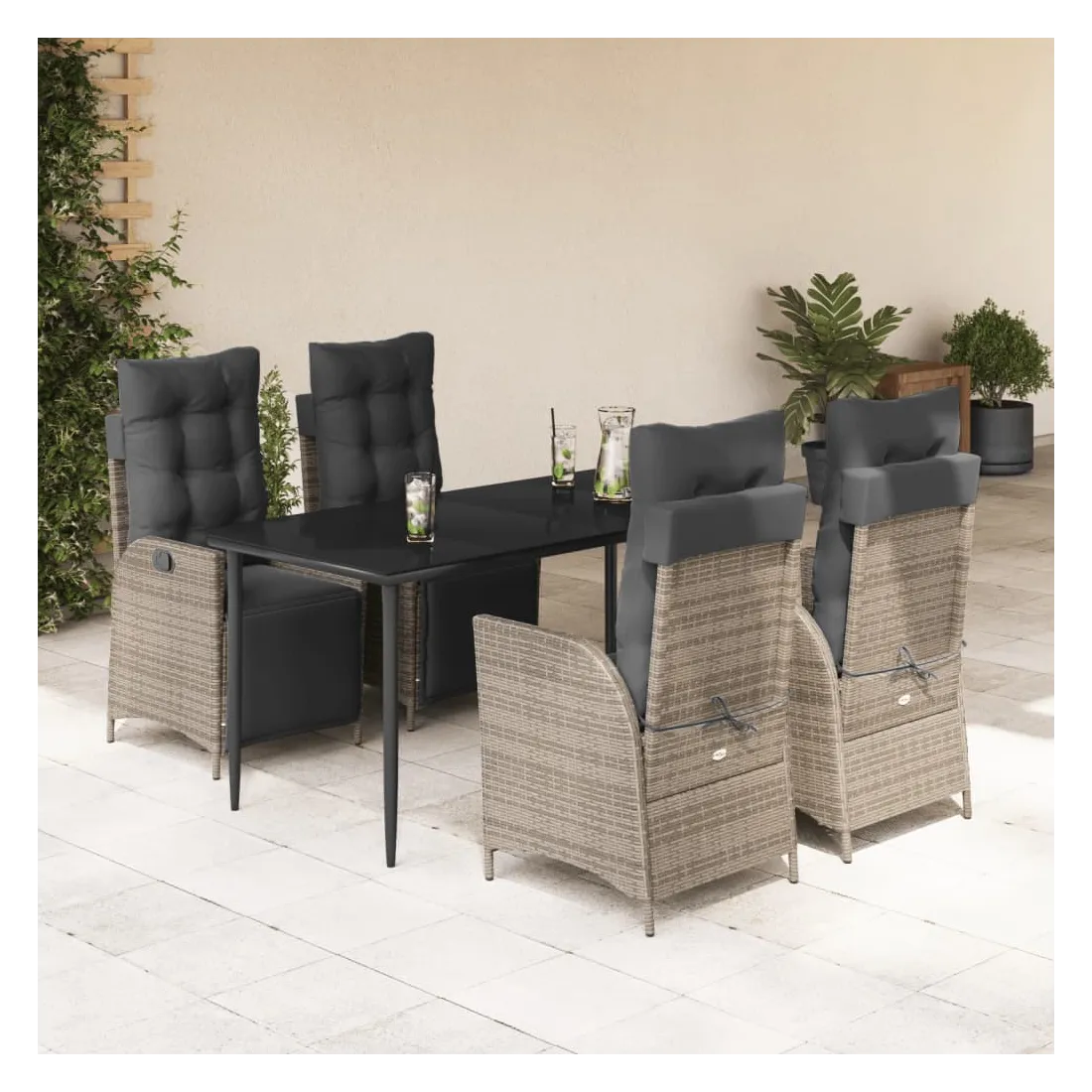 Cet ensemble de salle à manger de jardin est un excellent choix pour les repas en plein air ou pour vous détendre dans le jardin, l'arrière-cour ou le patio. Matériau durable : la résine tressée, également connue sous le nom de poly rotin, est un matériau synthétique solide et nécessitant peu d'entretien qui ressemble au rotin naturel. Il est léger, facile à nettoyer et couramment utilisé pour les meubles d'extérieur en raison de sa durabilité et de ses propriétés de résistance aux intempéries.Dossier et repose-pied réglables : ce siège de jardin est doté d'une poignée. Vous pouvez régler le dossier et le repose-pied dans n'importe quelle position en tirant sur la poignée, et les remettre rapidement dans leur position initiale.Expérience d'assise confortable : ce mobilier d'extérieur, doté de coussins épais, offre une expérience d'assise confortable.Housse amovible et lavable : ces coussins de siège sont dotés de housses amovibles pour un lavage et un entretien faciles. Les coussins de dossier ont un rabat à l'arrière pour une fixation facile aux dossiers.Dessus en verre : le dessus de la table d'extérieur est fabriqué en verre trempé solide et durable, ce qui le rend facile à nettoyer avec un chiffon humide et ajoute une touche d'élégance à votre espace extérieur. Bon à savoir :Pour que vos meubles d'extérieur restent beaux, nous vous recommandons de les protéger avec une housse imperméable.