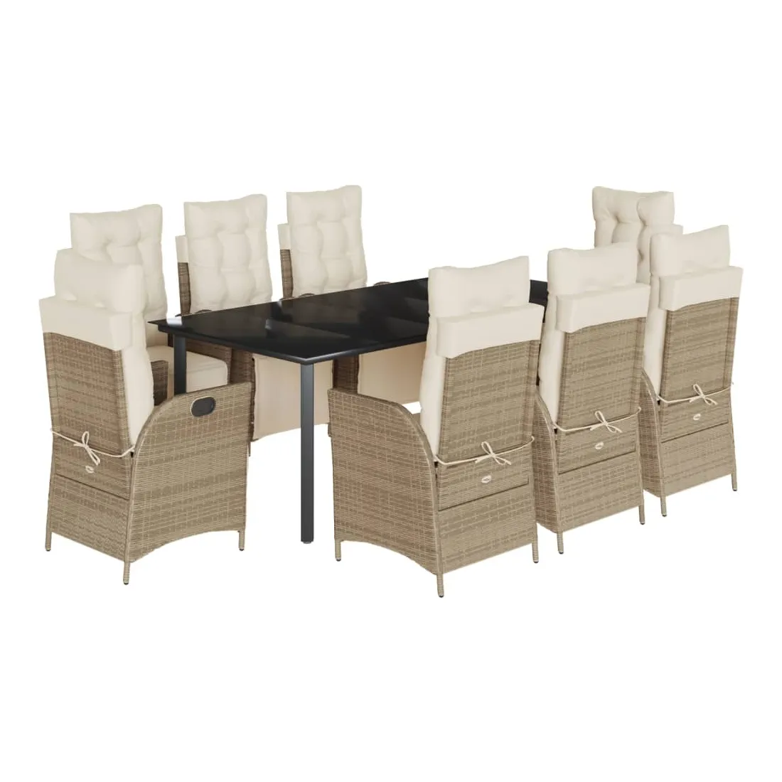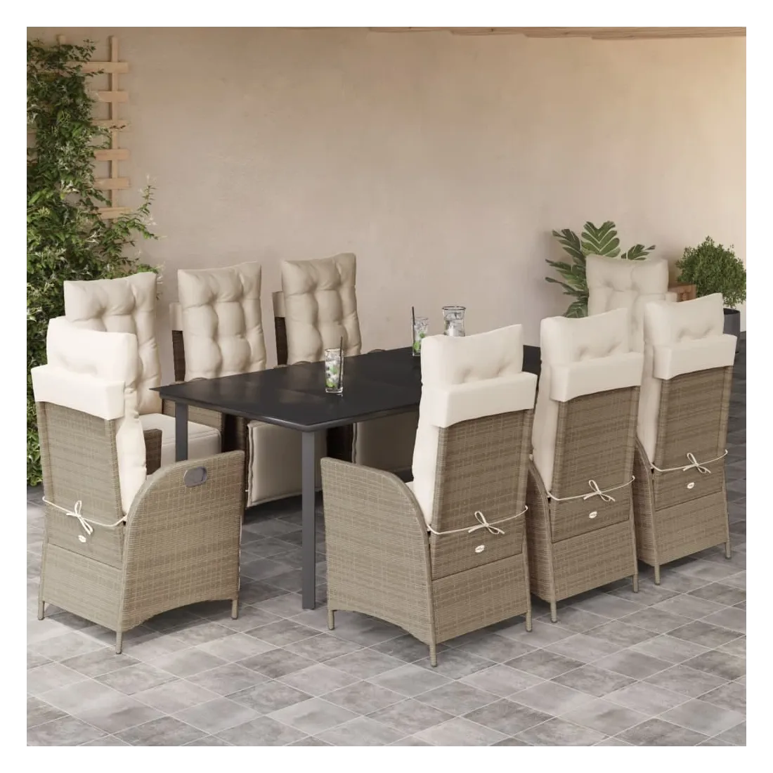 Cet ensemble de salle à manger de jardin est un excellent choix pour les repas en plein air ou pour vous détendre dans le jardin, l'arrière-cour ou le patio. Matériau durable : la résine tressée, également connue sous le nom de poly rotin, est un matériau synthétique solide et nécessitant peu d'entretien qui ressemble au rotin naturel. Il est léger, facile à nettoyer et couramment utilisé pour les meubles d'extérieur en raison de sa durabilité et de ses propriétés de résistance aux intempéries.Dossier et repose-pied réglables : ce siège de jardin est doté d'une poignée. Vous pouvez régler le dossier et le repose-pied dans n'importe quelle position en tirant sur la poignée, et les remettre rapidement dans leur position initiale.Expérience d'assise confortable : ce mobilier d'extérieur, doté de coussins épais, offre une expérience d'assise confortable.Housse amovible et lavable : ces coussins de siège sont dotés de housses amovibles pour un lavage et un entretien faciles. Les coussins de dossier ont un rabat à l'arrière pour une fixation facile aux dossiers.Dessus en verre : le dessus de la table d'extérieur est fabriqué en verre trempé solide et durable, ce qui le rend facile à nettoyer avec un chiffon humide et ajoute une touche d'élégance à votre espace extérieur. Bon à savoir :Pour que vos meubles d'extérieur restent beaux, nous vous recommandons de les protéger avec une housse imperméable.